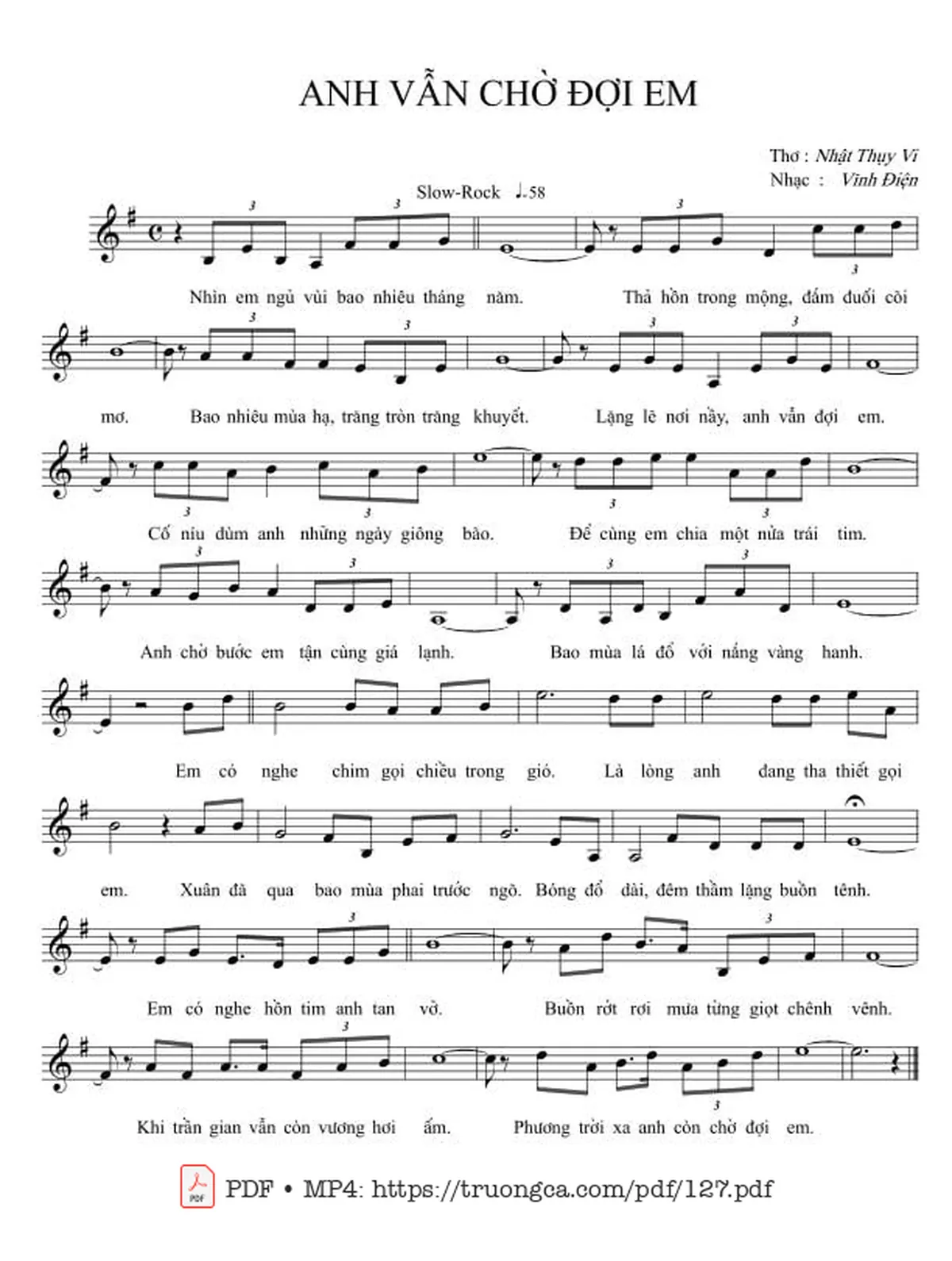 Các sheet PDF cùng tên Anh vẫn chờ đợi em: