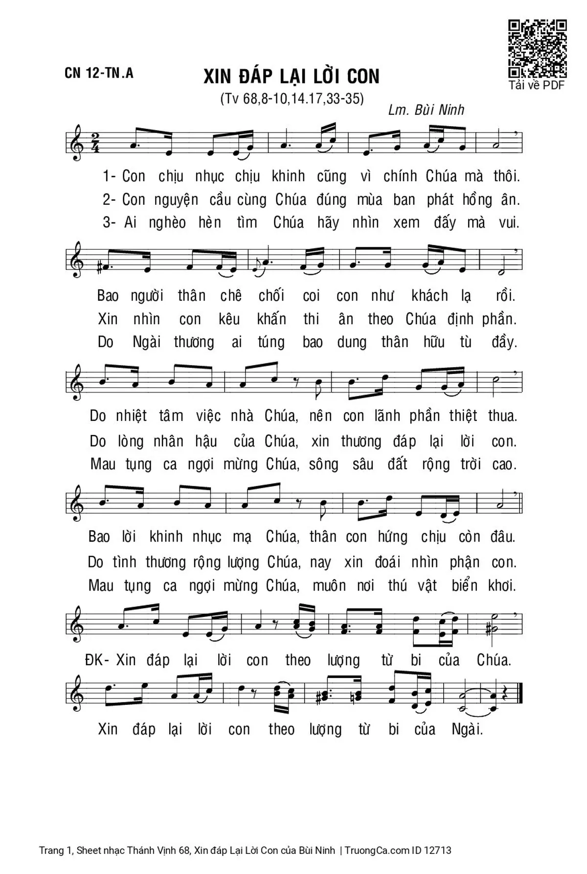 Các sheet PDF tương tự Thánh Vịnh 68, Xin đáp Lại Lời Con: