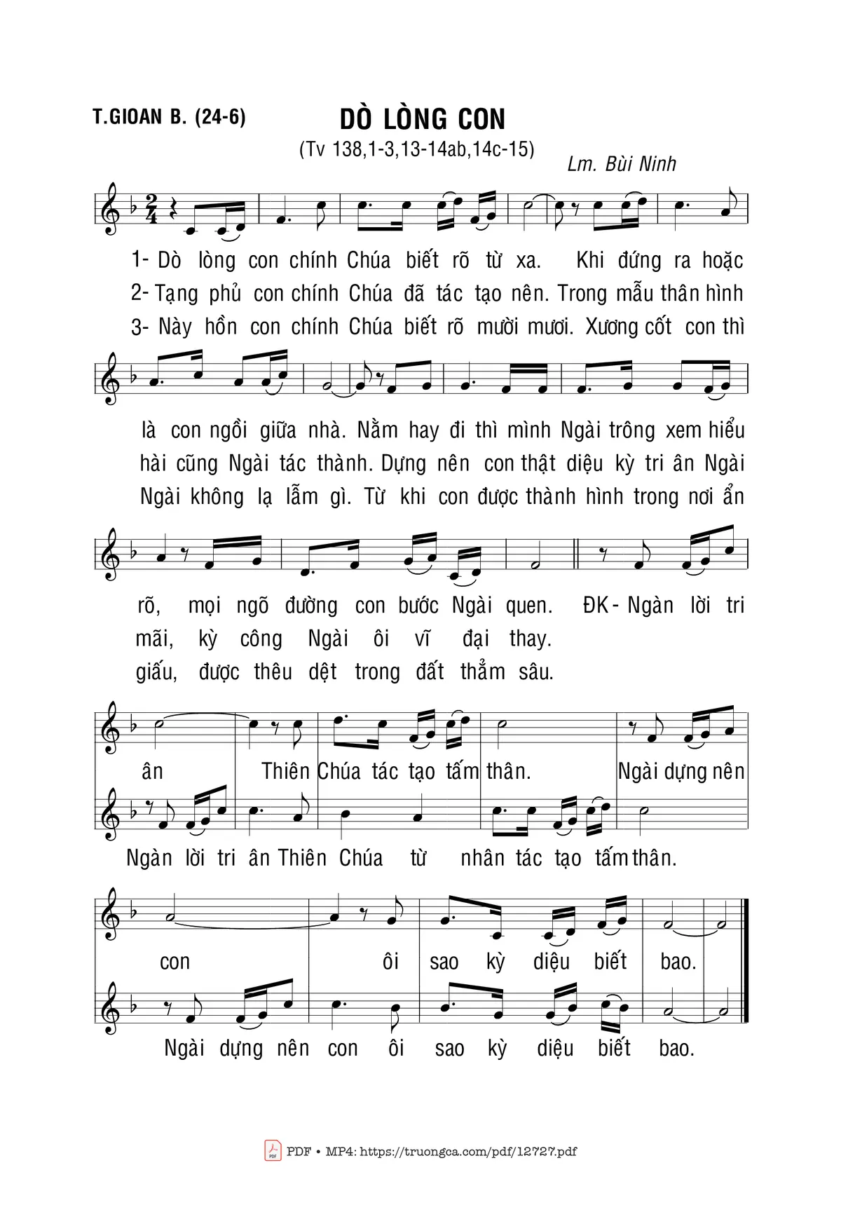Bùi Ninh Dò lòng con chính Chúa biết rõ từ xa Khi đứng ra hoặc là con ngồi giữa nhà [PDF] [Sheet] [Lời H.A] [Mp4/Midi]