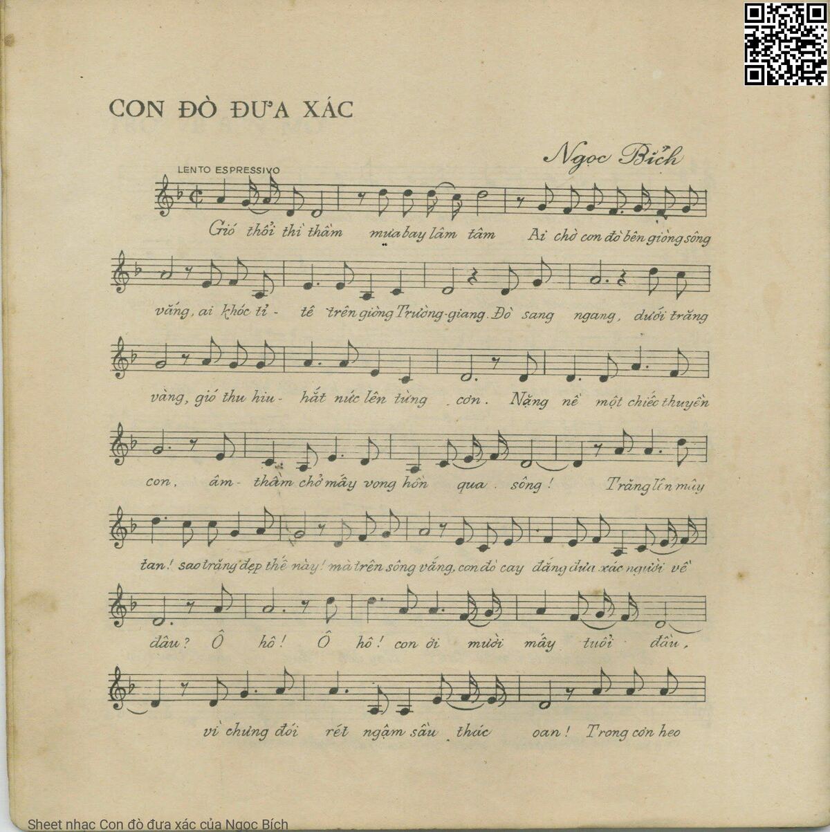 Phần nghe hát Con đò đưa xác (Ngọc Bích) được nhúng từ Youtube, Musescore hoặc link ngoài và chịu sự kiểm soát bản quyền của bên thứ ba đó, vì vậy có thể bị xóa hoặc chèn quảng cáo bất kỳ lúc nào. Nếu bạn không nghe - xem được ca sĩ hát tức là đã bị Youtube hoặc Musescore kiểm soát.