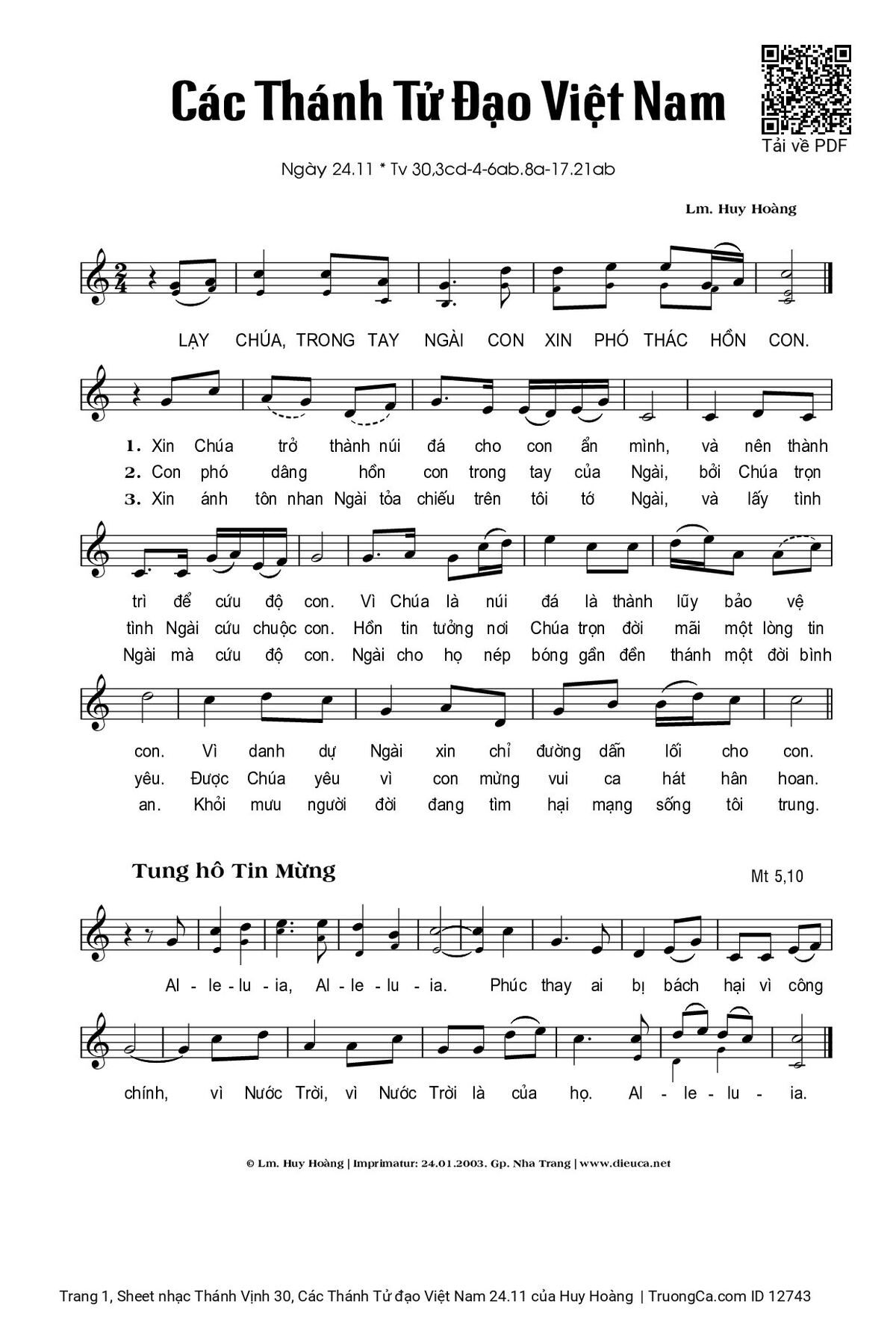 Các sheet PDF tương tự Thánh Vịnh 30, Các Thánh Tử đạo Việt Nam 24.11: