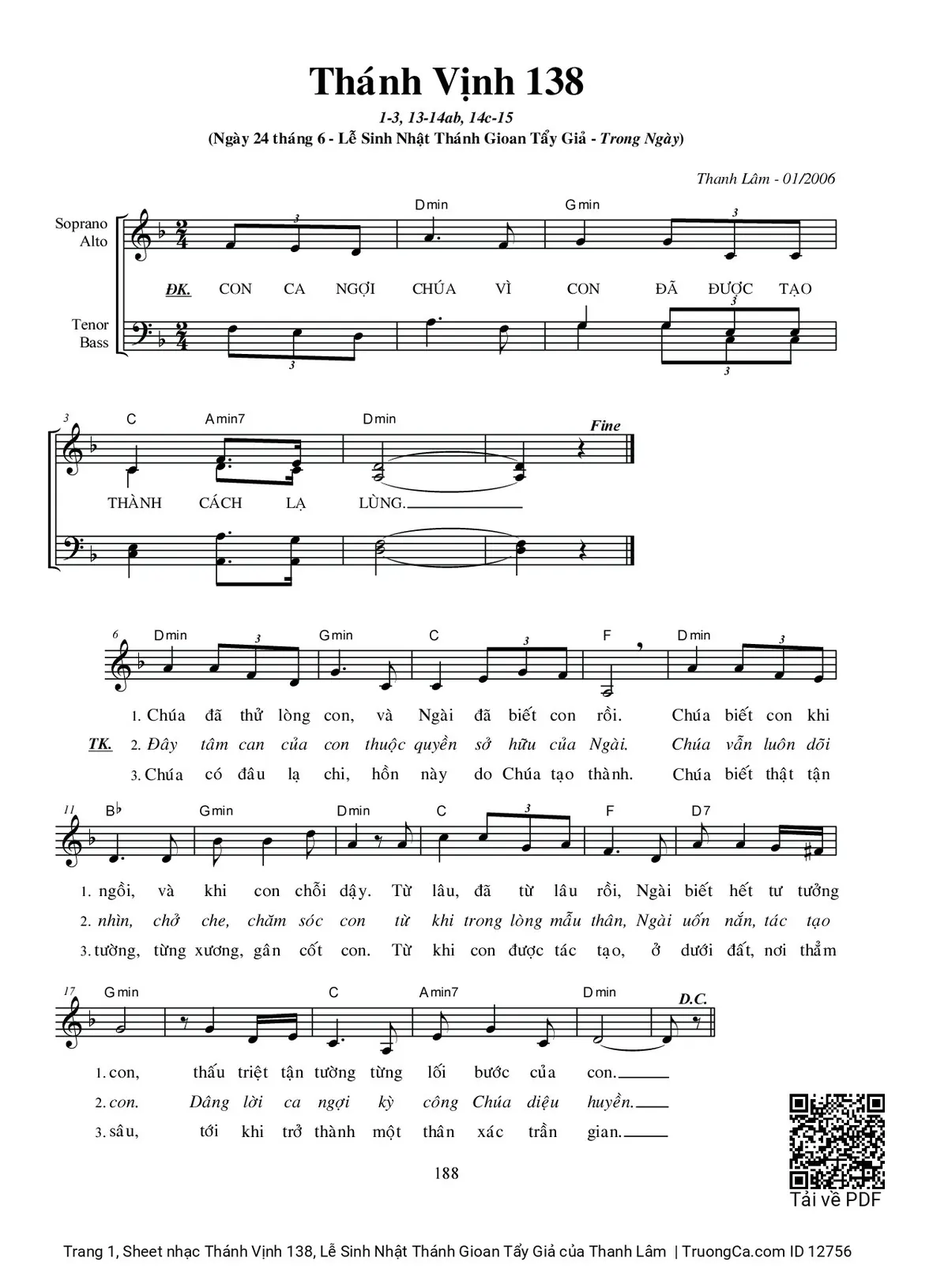 Các sheet PDF cùng tên Thánh Vịnh 138, Lễ Sinh Nhật Thánh Gioan Tẩy Giả: