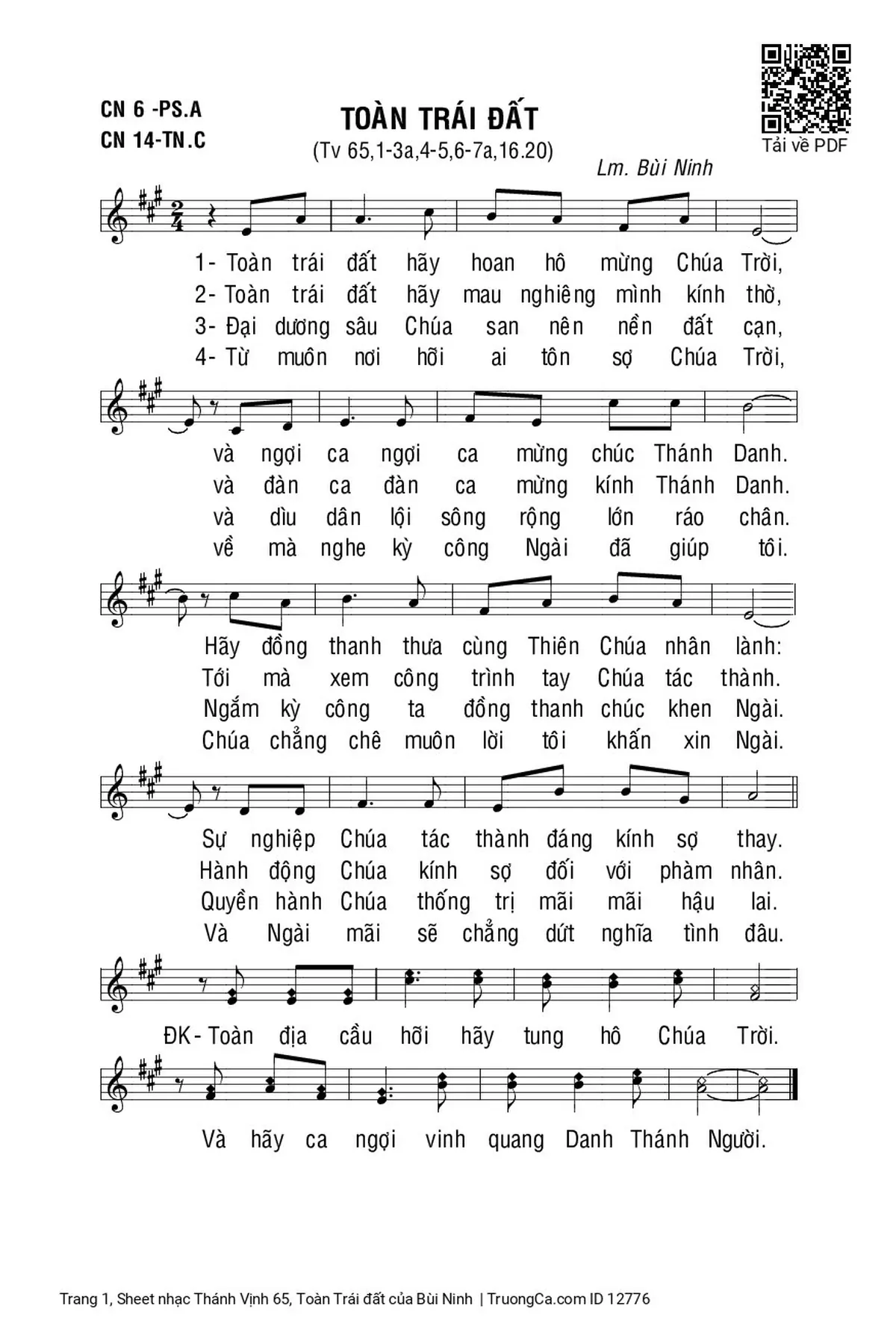 Các sheet PDF tương tự Thánh Vịnh 65, Toàn Trái đất: