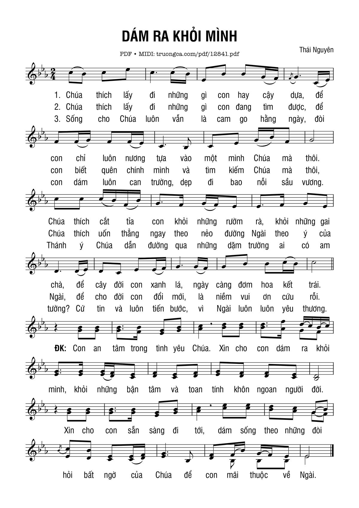 Thái Nguyên Chúa thích lấy đi những gì con hay cậy dựa [PDF] [Sheet] [Lời H.A] [Mp4/Midi]