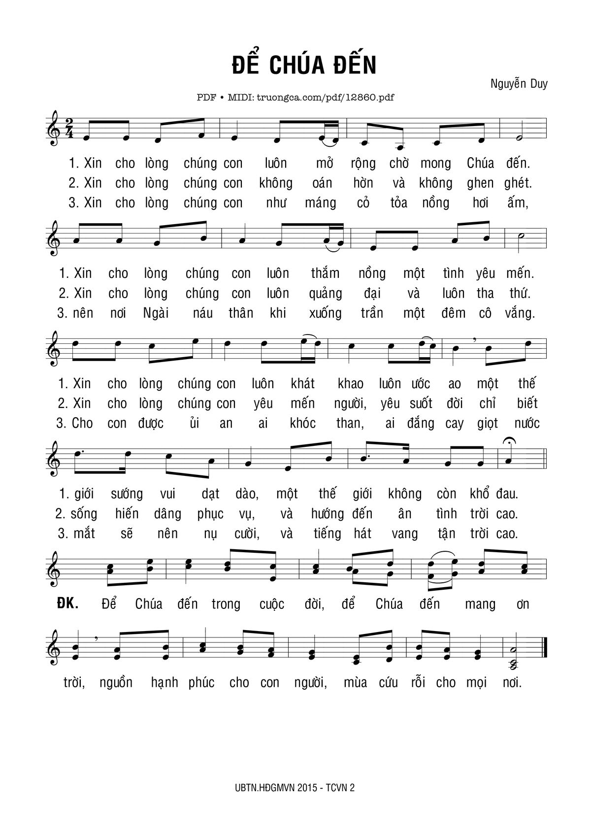 Nguyễn Duy Xin cho lòng chúng con luôn mở rộng chờ mong Chúa đến [PDF] [Sheet] [Lời H.A] [Mp4/Midi]
