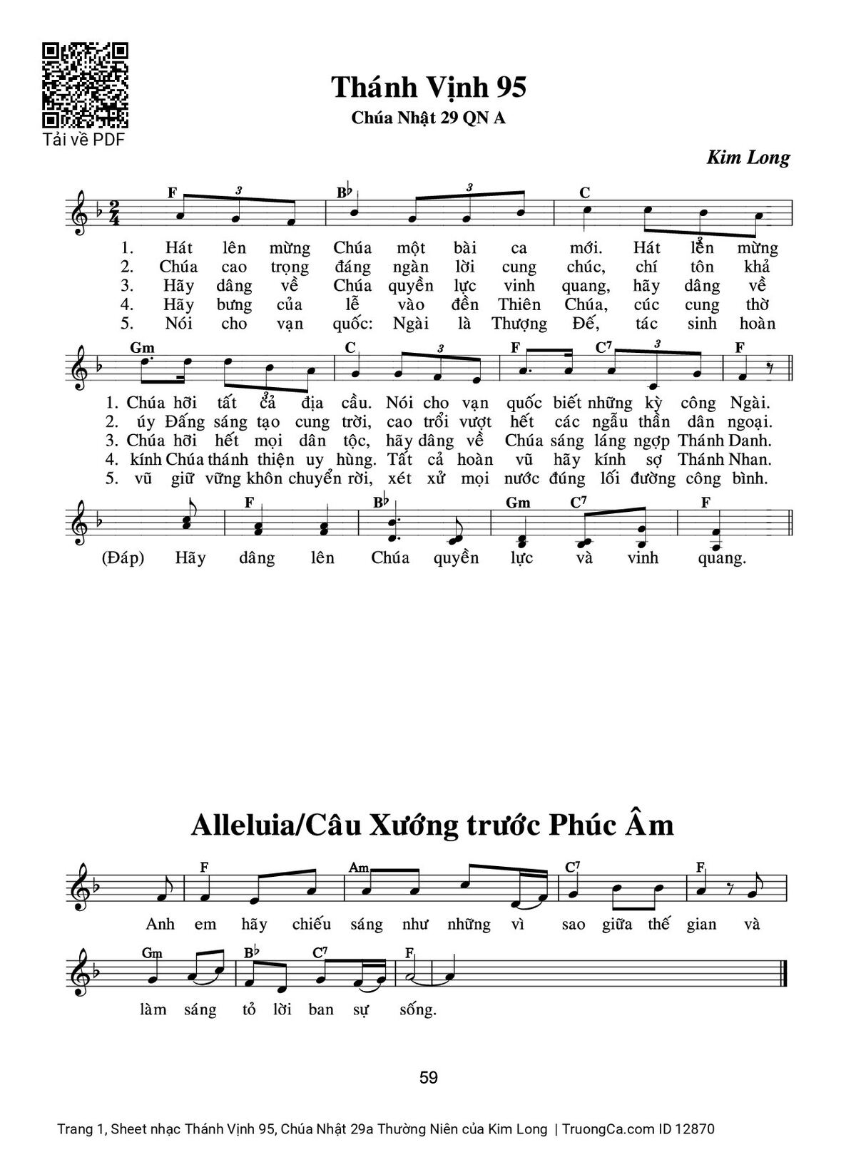Các sheet PDF cùng tên Thánh Vịnh 95, Chúa Nhật 29a Thường Niên: