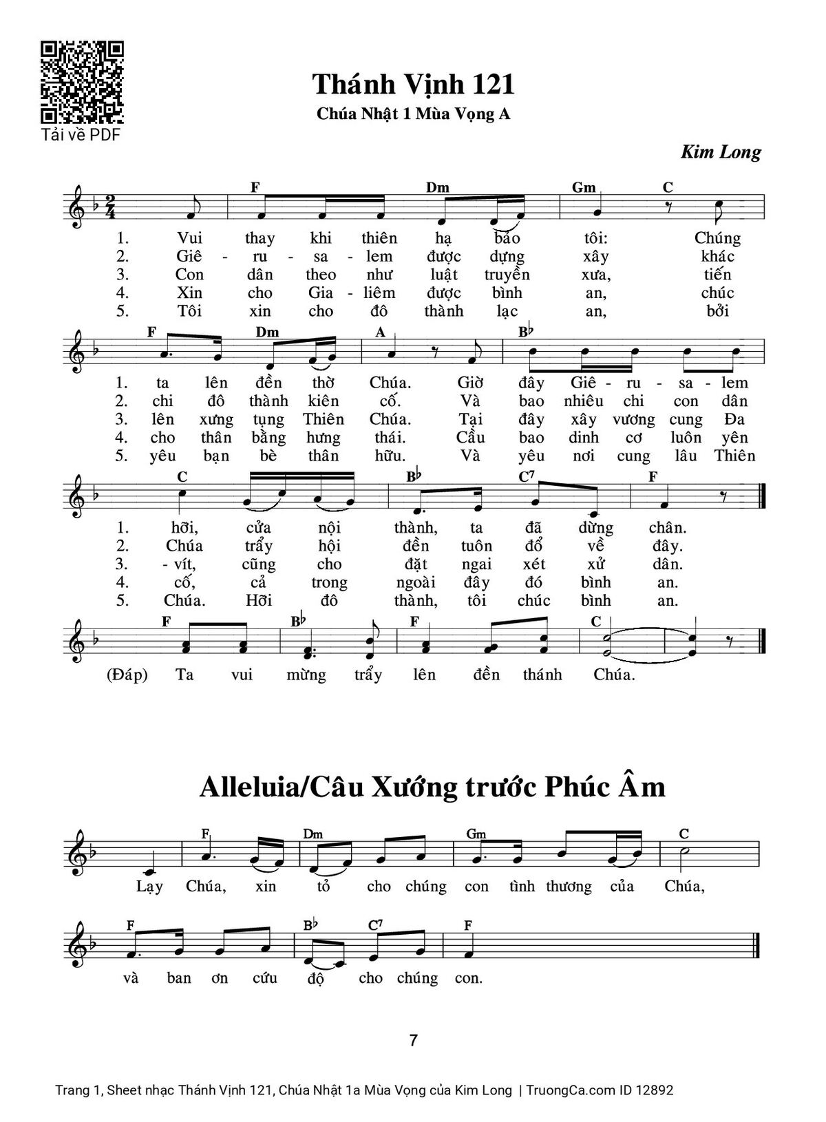 Các sheet PDF cùng tên Thánh Vịnh 121, Chúa Nhật 1a Mùa Vọng: