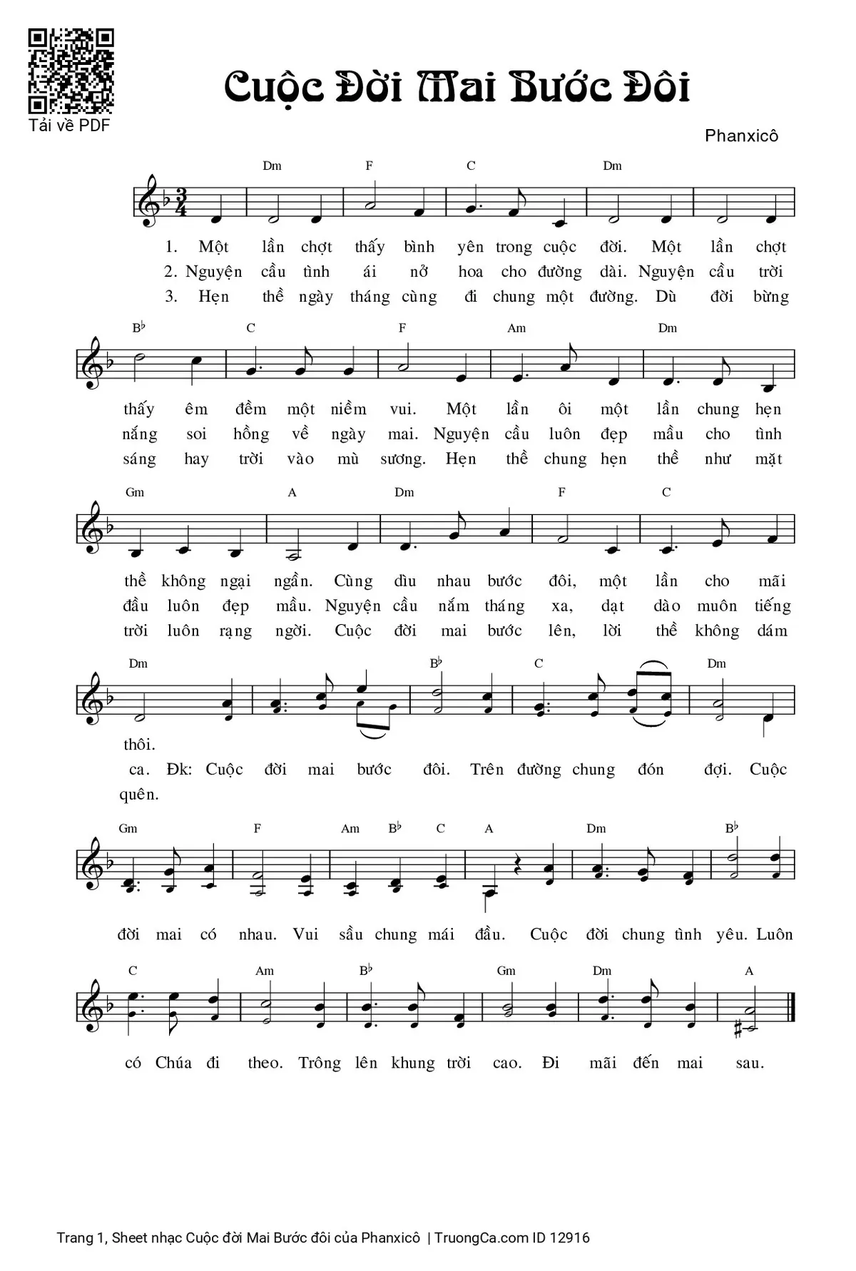 Điệp khúc. Cuộc đời mai bước đôi, trên đường chung đón đợi. Cuộc đời mai có nhau, vui sầu chung mái đầu. Cuộc đời chung tình yêu, luôn có Chúa đi theo. Trông lên khung trời cao, đi mãi đến mai sau.