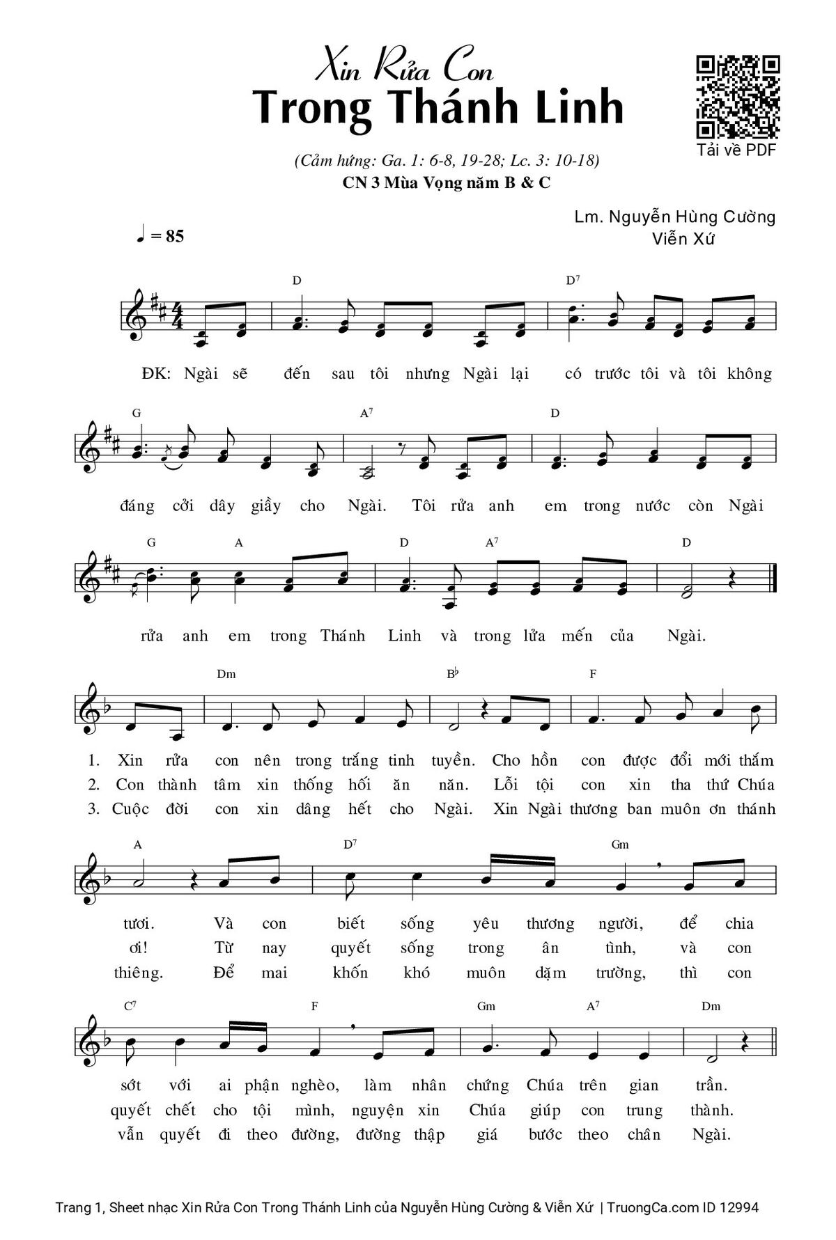 Phần nghe hát Xin Rửa Con Trong Thánh Linh (Nguyễn Hùng Cường & Viễn Xứ) được nhúng từ Youtube, Musescore hoặc link ngoài và chịu sự kiểm soát bản quyền của bên thứ ba đó, vì vậy có thể bị xóa hoặc chèn quảng cáo bất kỳ lúc nào. Nếu bạn không nghe - xem được ca sĩ hát tức là đã bị Youtube hoặc Musescore kiểm soát.