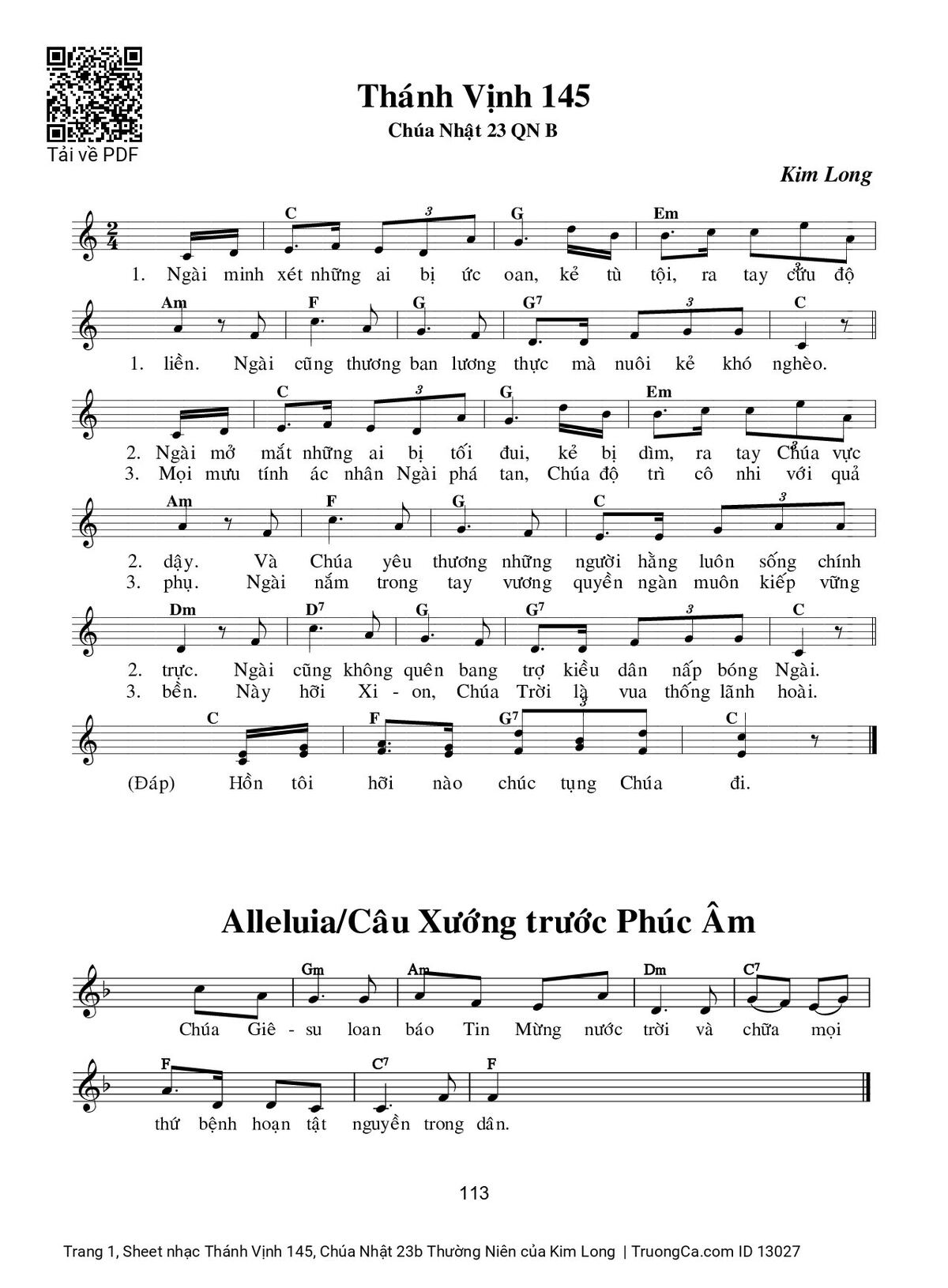 Thể loại 🌾 Nhạc Thánh Ca, 🌾 Thánh Vịnh - Đáp Ca, 🌾 Thánh ca Imprimatur, 🌾 Thánh Vịnh 145