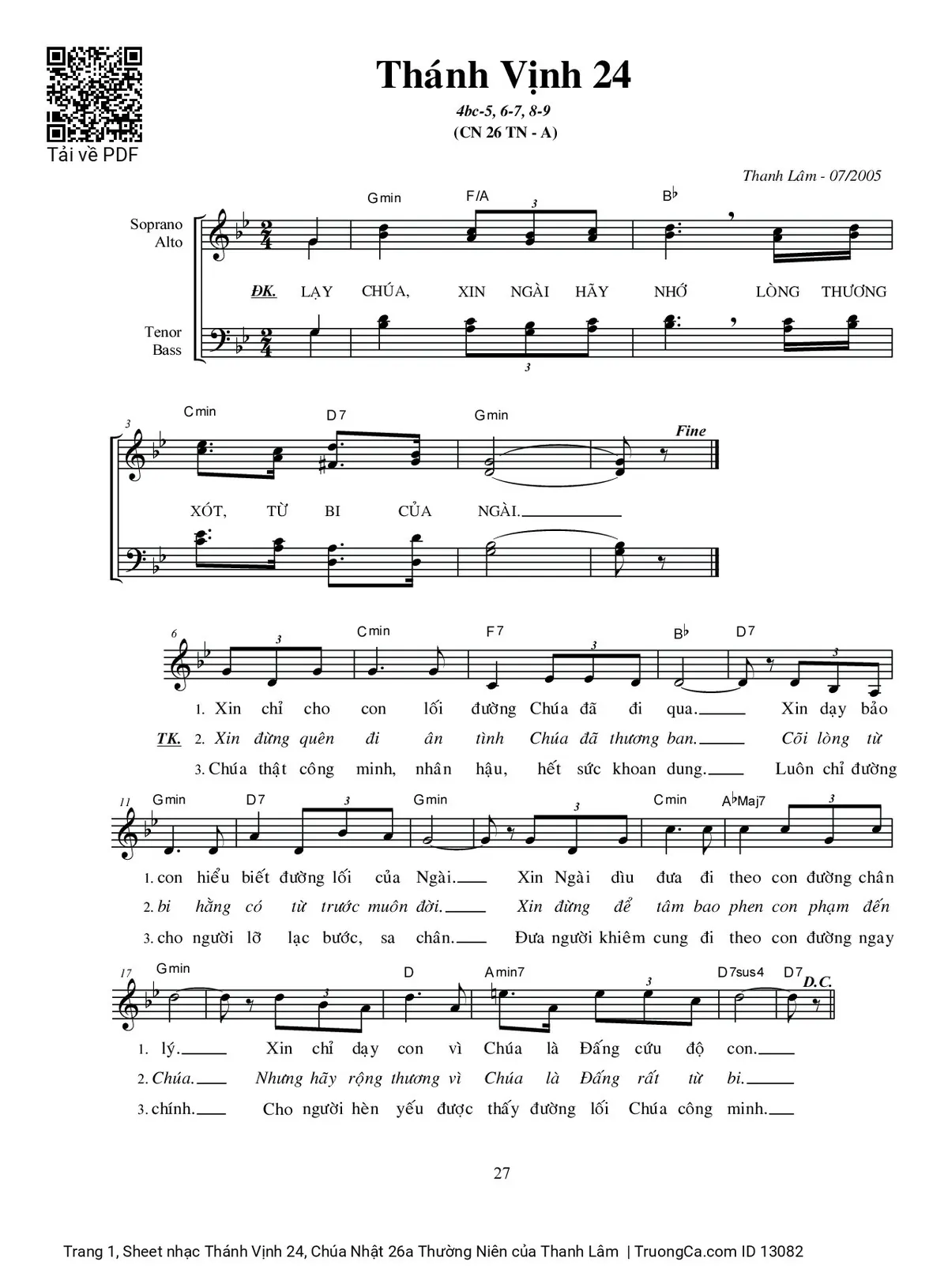 Các sheet PDF cùng tên Thánh Vịnh 24, Chúa Nhật 26a Thường Niên: