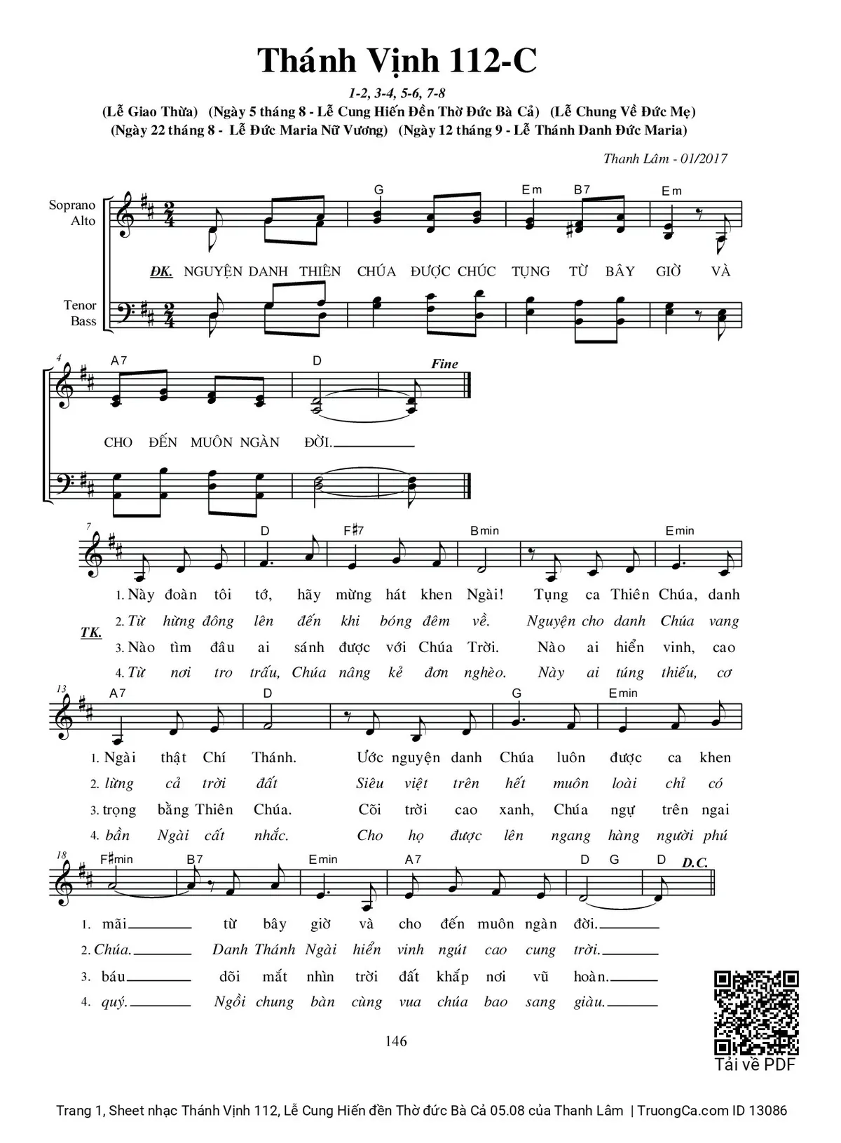 Các sheet PDF tương tự Thánh Vịnh 112, Lễ Cung Hiến đền Thờ đức Bà Cả 05.08: