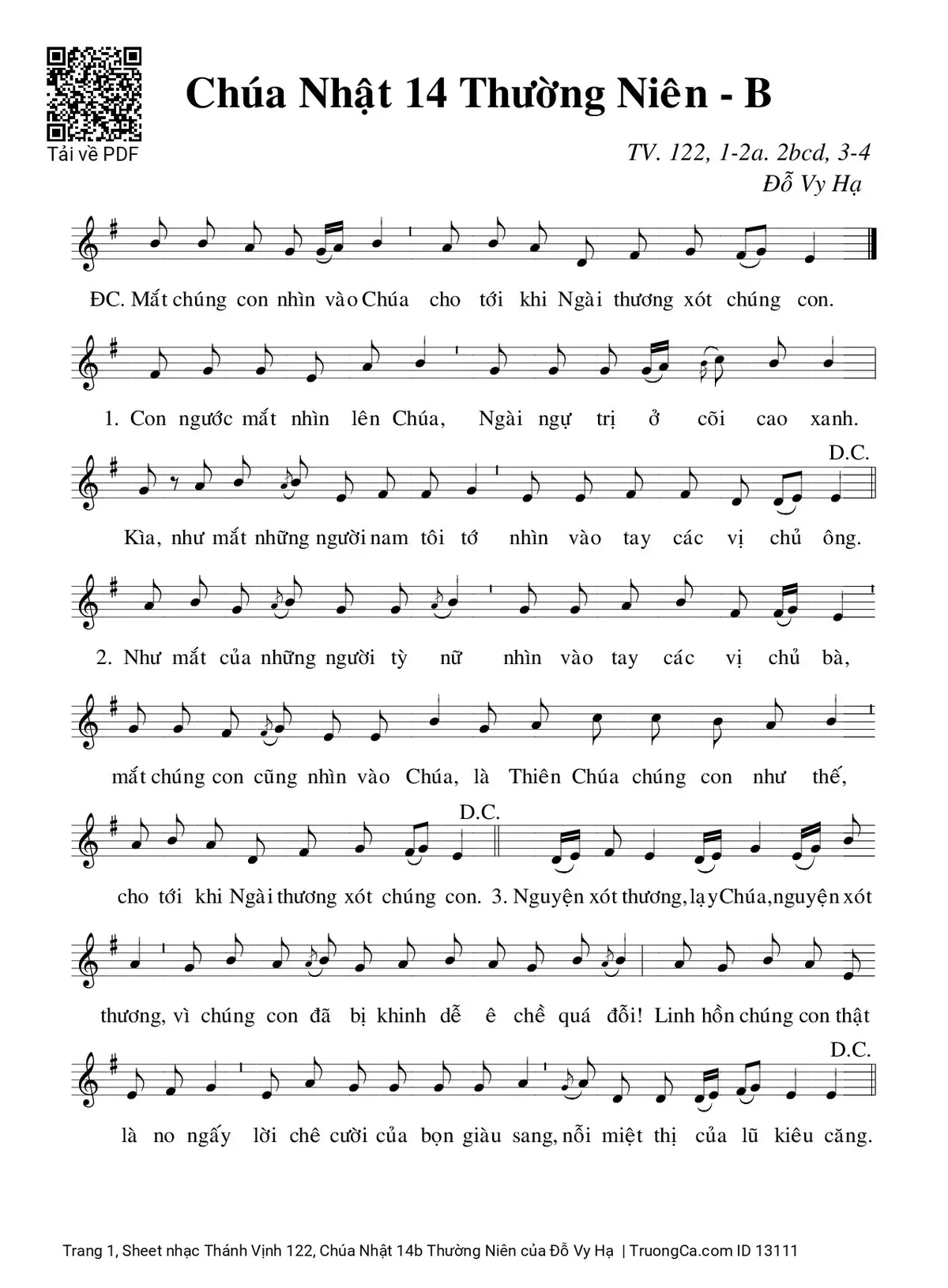 Các sheet PDF cùng tên Thánh Vịnh 122, Chúa Nhật 14b Thường Niên: