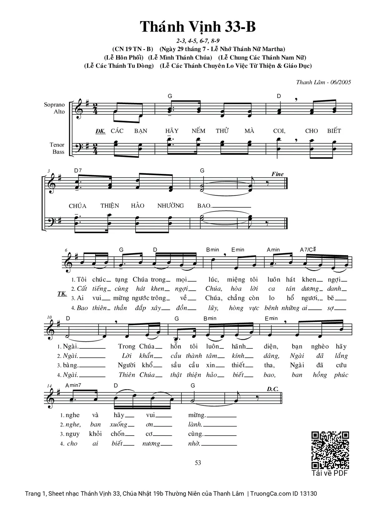 Các sheet PDF cùng tên Thánh Vịnh 33, Chúa Nhật 19b Thường Niên: