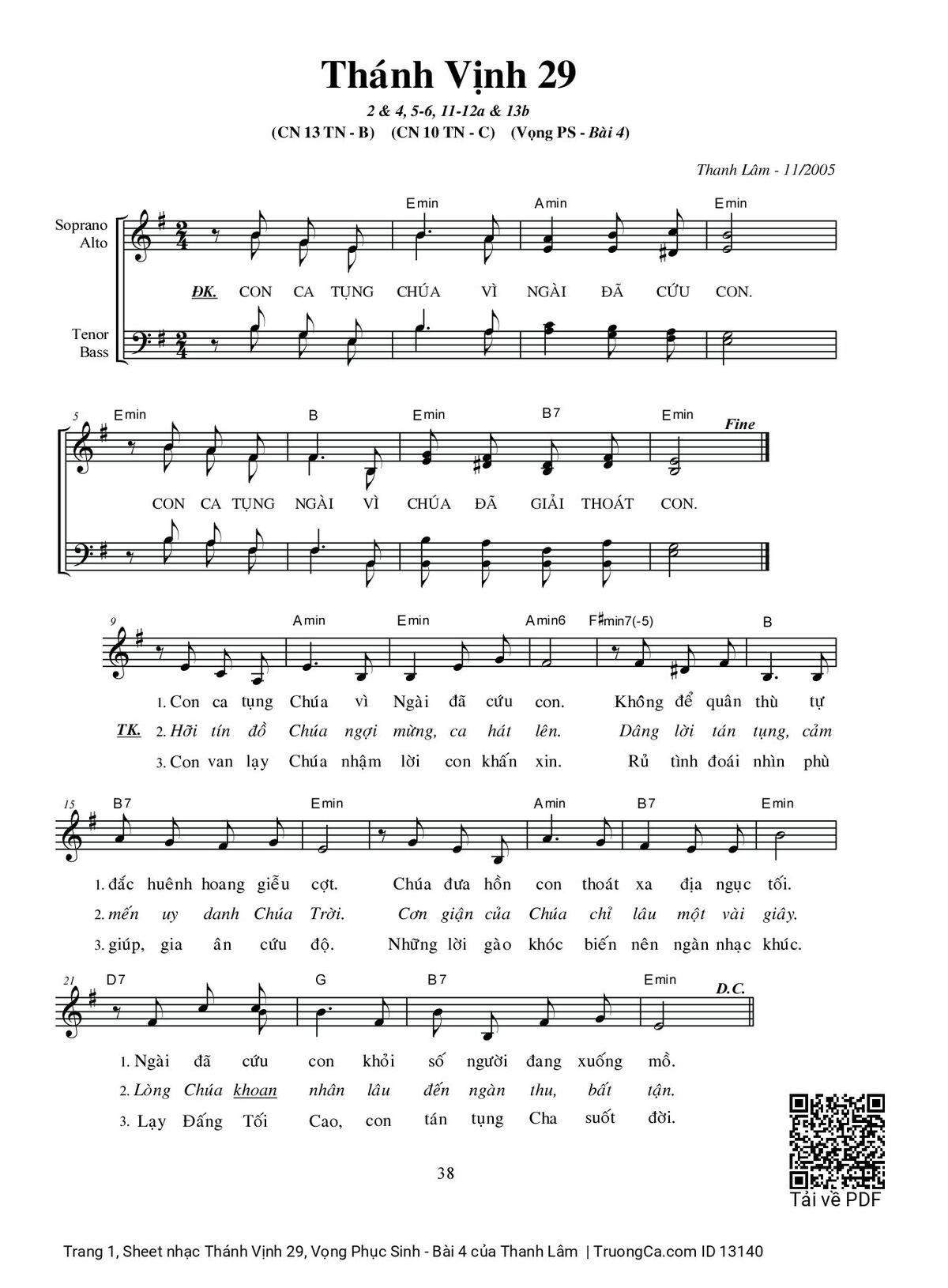 Thanh Lâm Con ca tụng Chúa vì Ngài đã cứu con Con ca tụng Ngài vì Chúa đã giải thoát con [PDF] [Sheet] [Lời H.A] [Mp4/Midi]