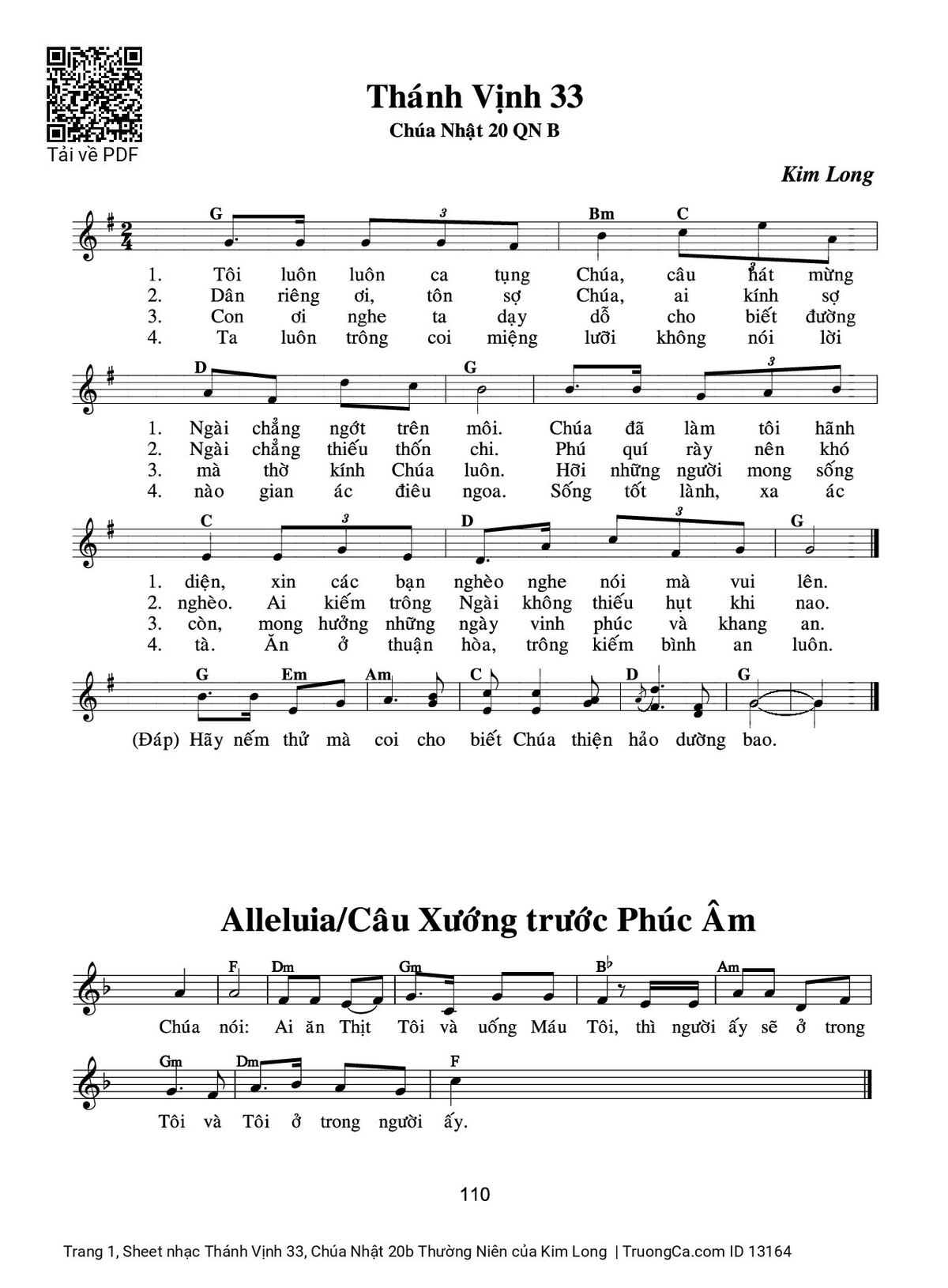 Các sheet PDF cùng tên Thánh Vịnh 33, Chúa Nhật 20b Thường Niên: