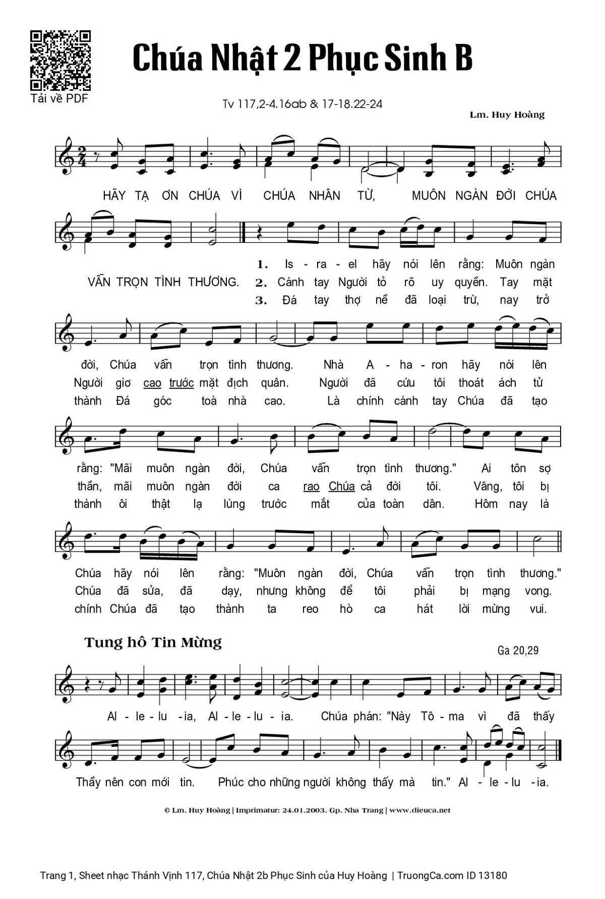 Các sheet PDF cùng tên Thánh Vịnh 117, Chúa Nhật 2b Phục Sinh: