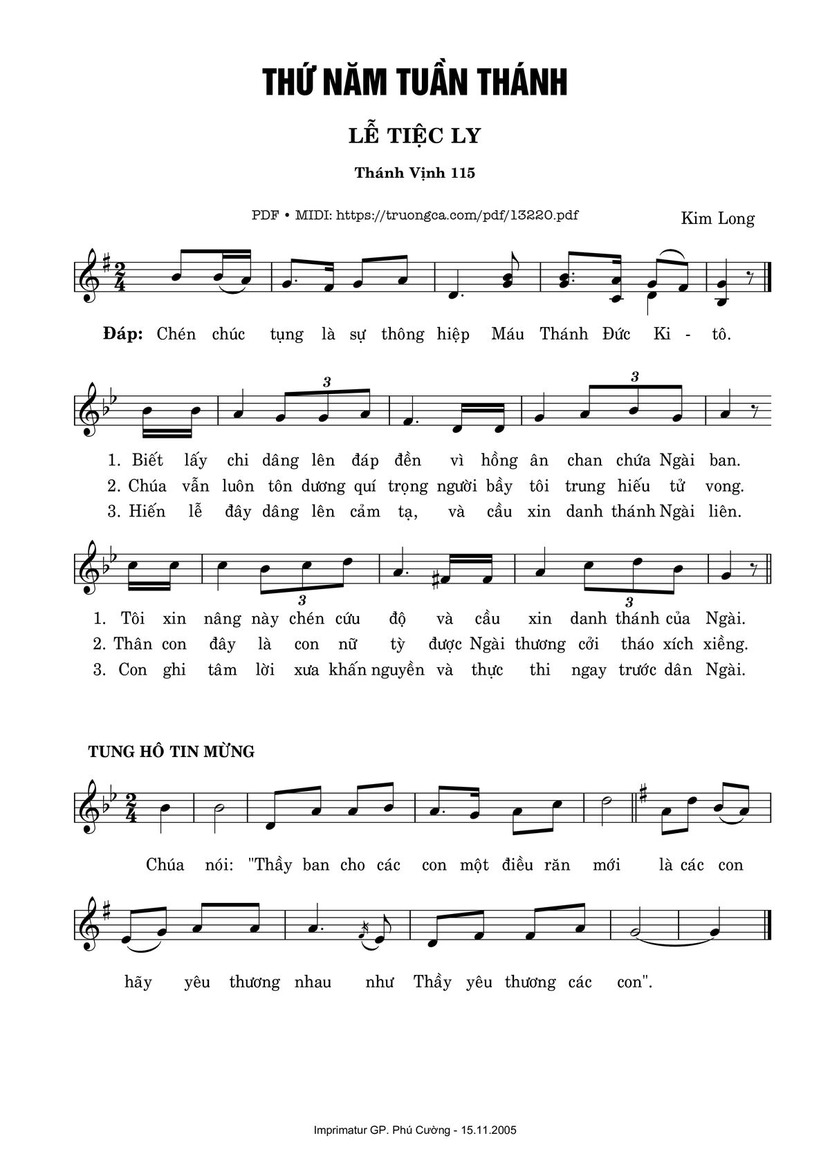 Kim Long ca Chén chúc tụng là sự thông hiệp Máu Thánh Đức Kitô [PDF] [Sheet] [Lời H.A] [Mp4/Midi]