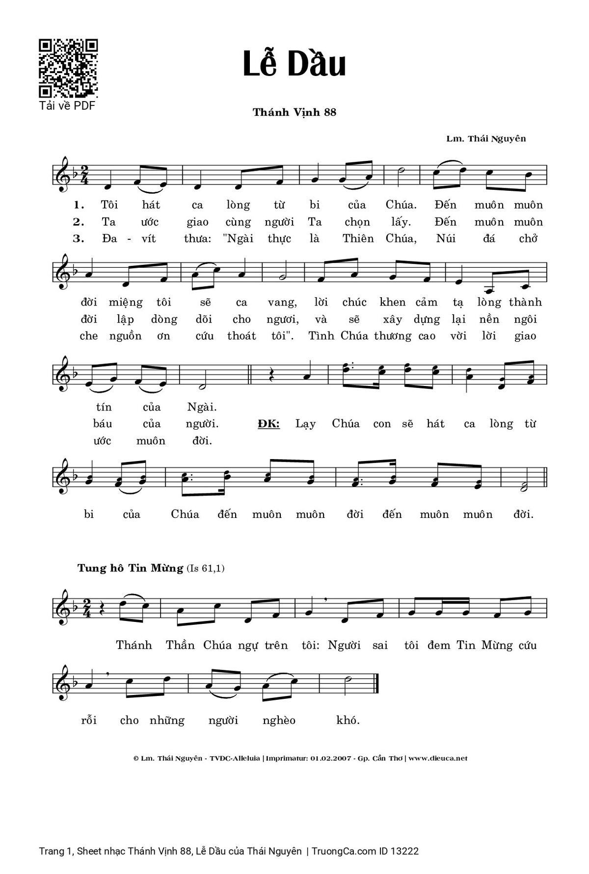 Thể loại 🌾 Nhạc Thánh Ca, 🌾 Thánh Vịnh - Đáp Ca, 🌾 Thánh ca Imprimatur, 🌾 Thánh Vịnh 88
