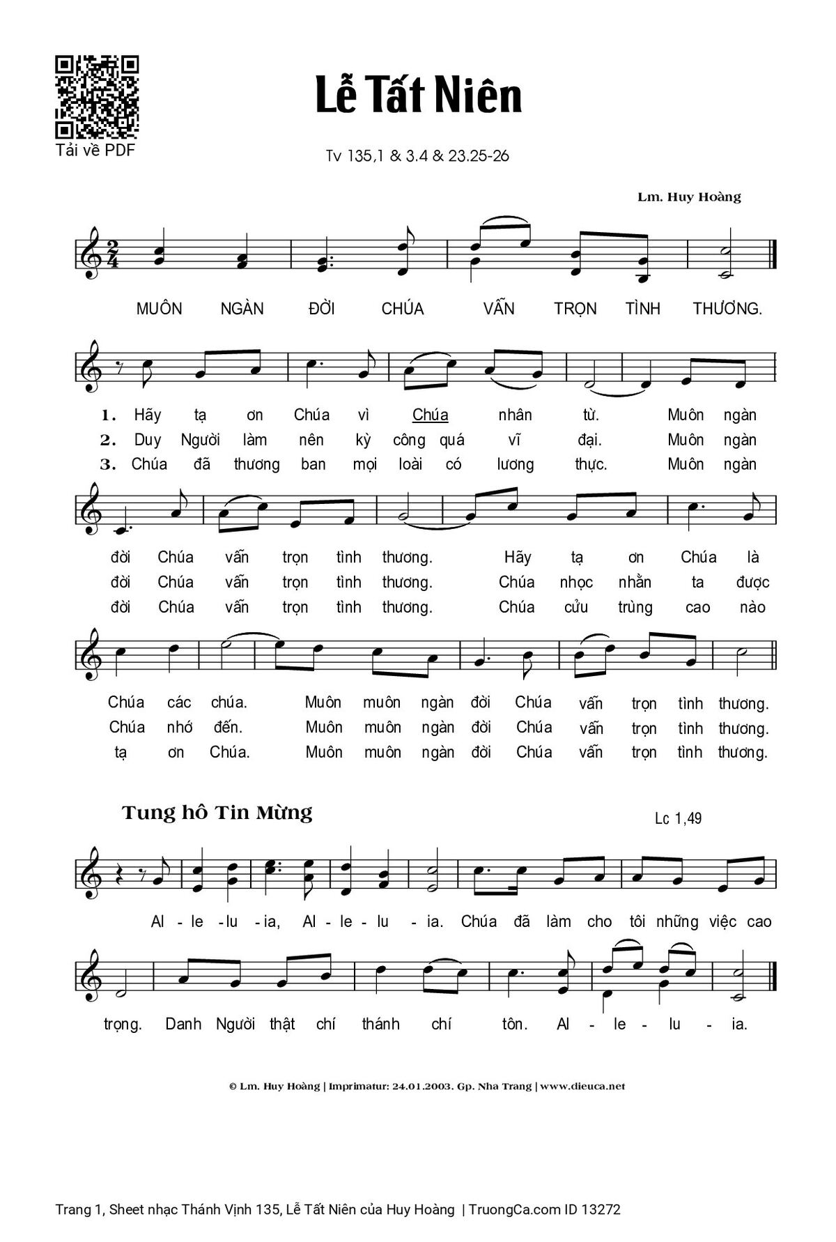 Thể loại 🌾 Nhạc Thánh Ca, 🌾 Thánh Vịnh - Đáp Ca, 🌾 Thánh ca Imprimatur, 🌾 Thánh Vịnh 135