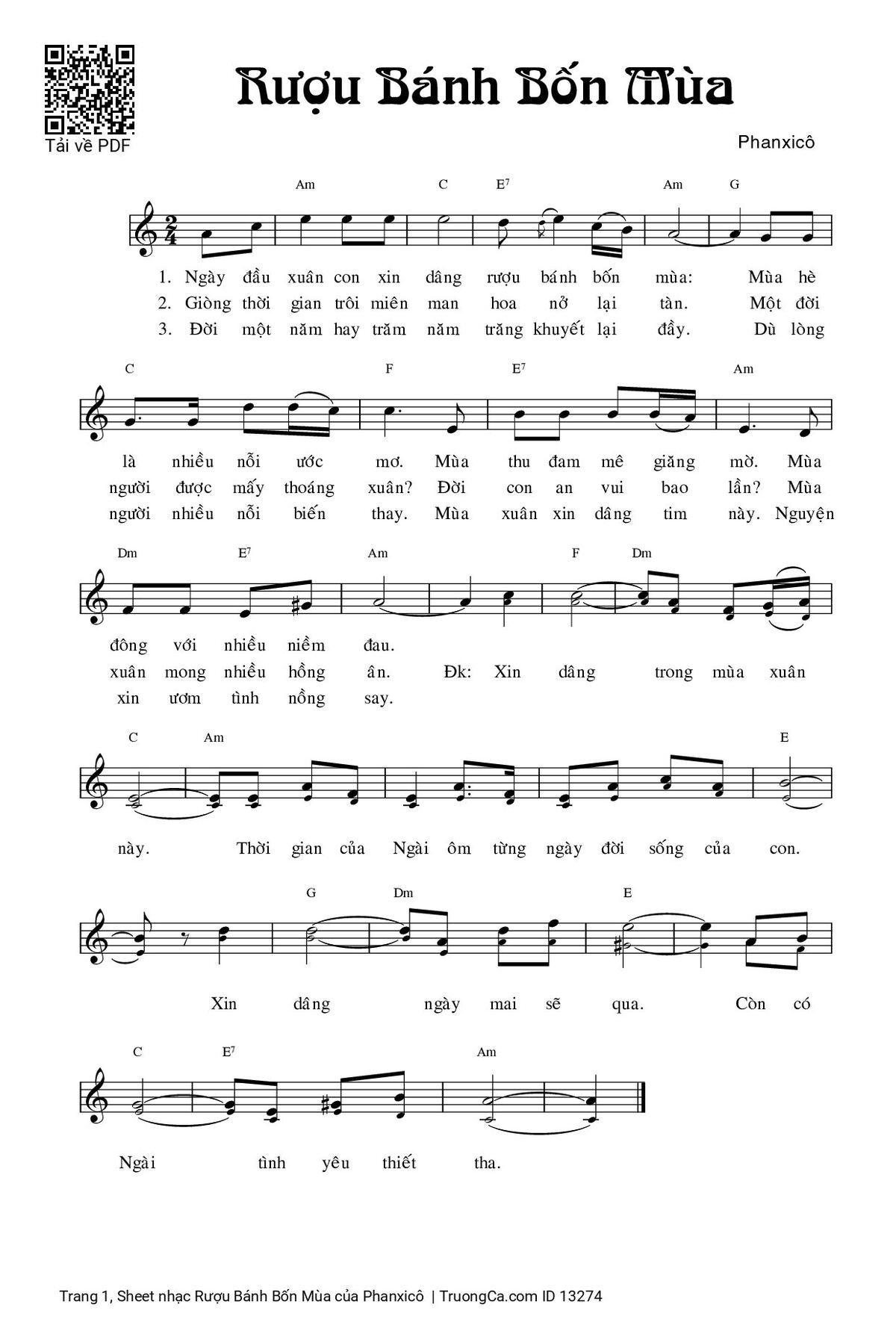 Các sheet PDF cùng tên Rượu Bánh Bốn Mùa: