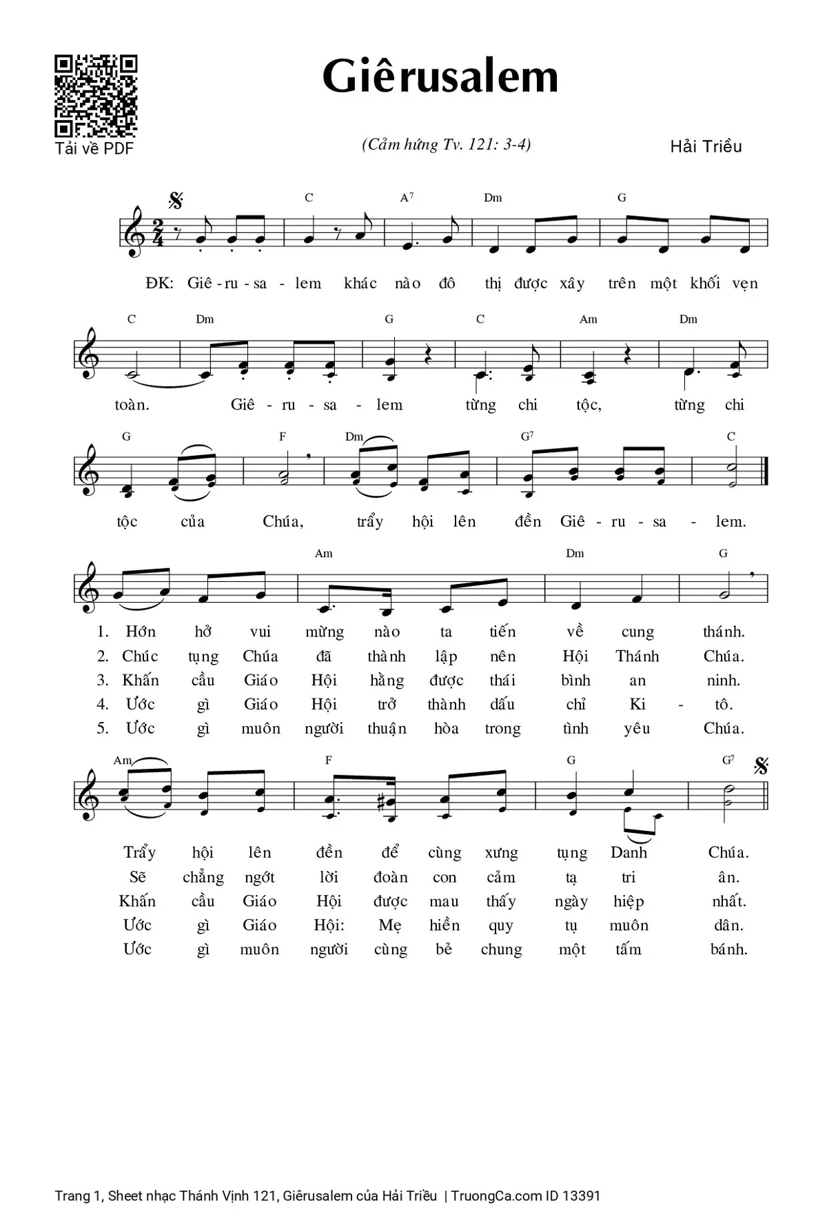 Các sheet PDF tương tự Thánh Vịnh 121, Giêrusalem: