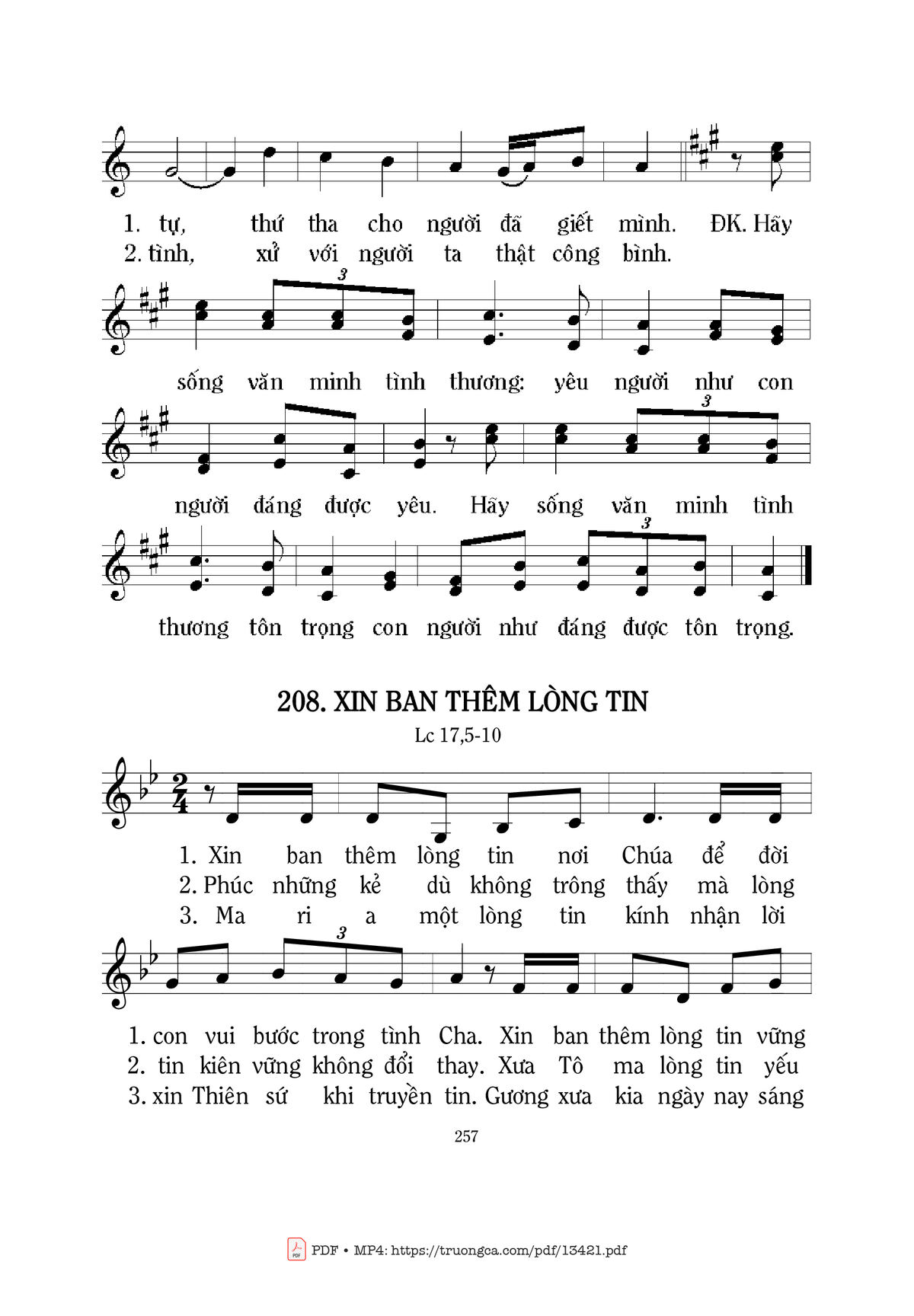 Điệp khúc. Xin ban thêm lòng tin cho chúng con thân phận người lòng tin con yếu đuối. Xin ban thêm lòng tin cho chúng con, giữa cuộc đời con vui bước bên Ngài.