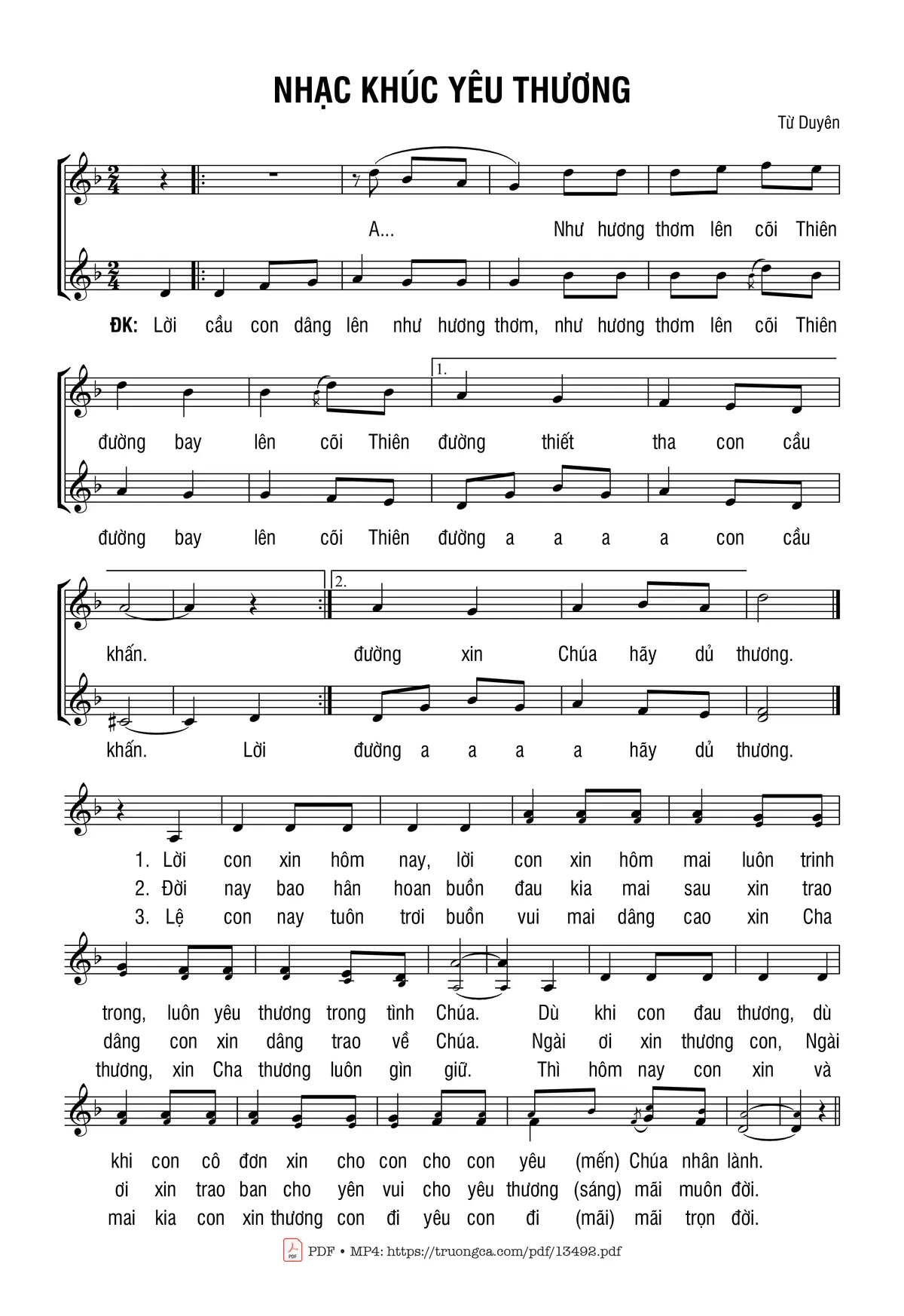 Từ Duyên Lời cầu con dâng lên như hương thơm như hương thơm lên cõi thiên đường [PDF] [Sheet] [Lời H.A] [Mp4/Midi]