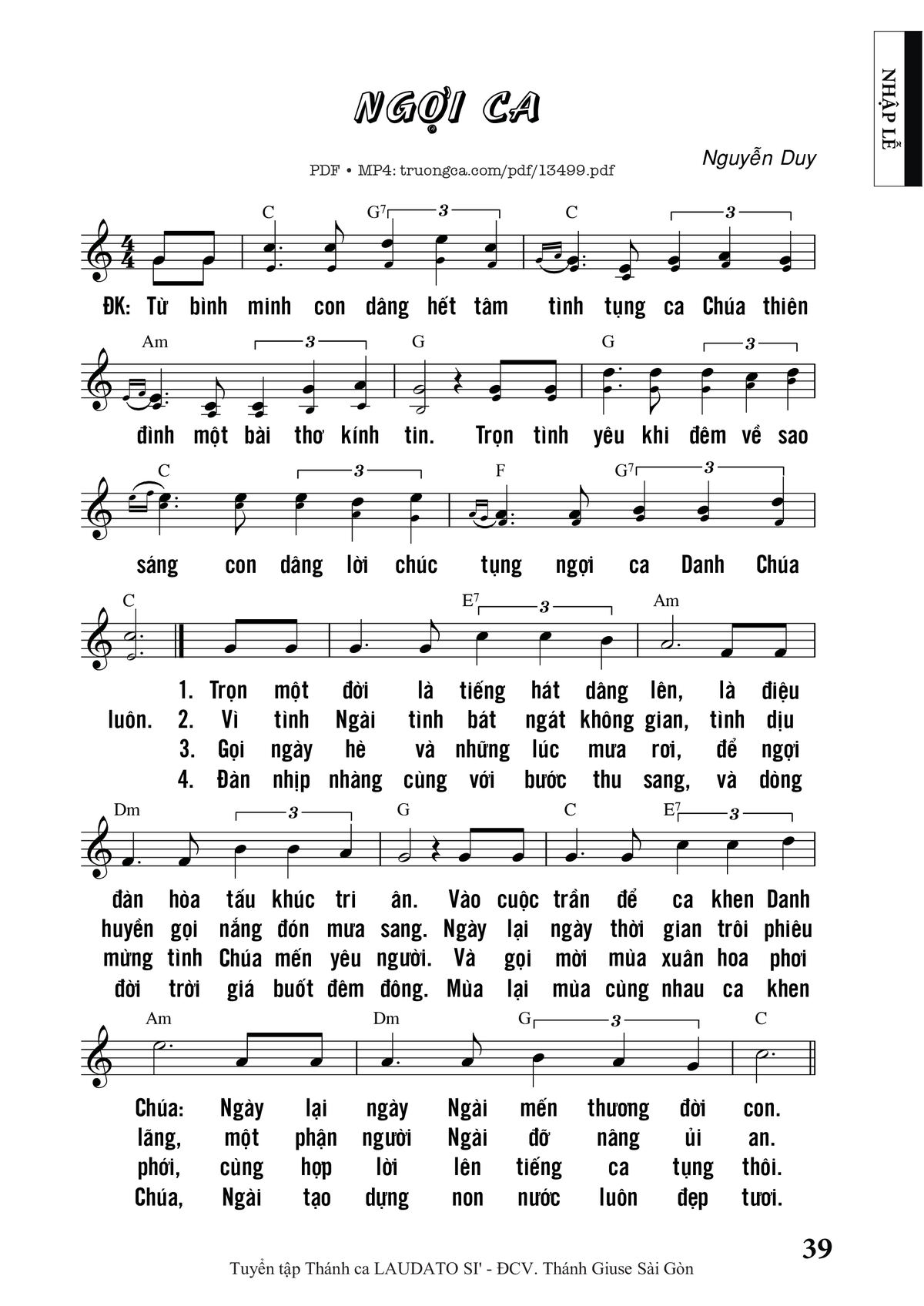Điệp khúc. Từ bình minh con dâng hết tâm tình tụng ca Chúa Thiên đình một bài thơ kính tin. Trọn tình yêu khi đêm về sao sáng con dâng lời chúc tụng ngợi ca danh Chúa thôi.