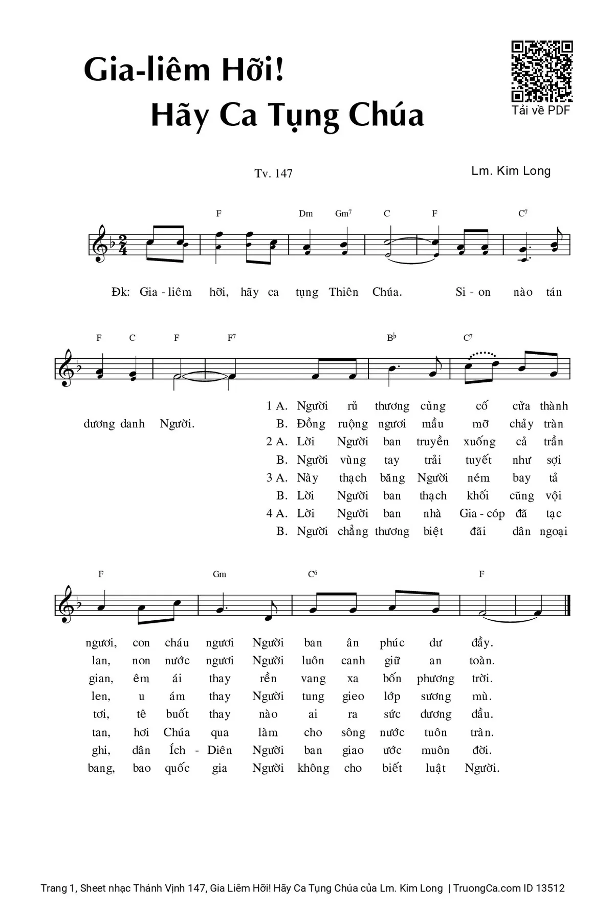 Các sheet PDF tương tự Thánh Vịnh 147, Gia Liêm Hỡi! Hãy Ca Tụng Chúa: