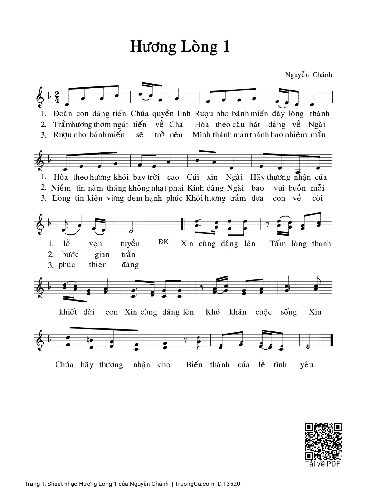 Điệp khúc. Xin cùng dâng lên, tấm lòng thanh khiết đời con. Xin cùng dâng lên, khó khăn cuộc sống. Xin Chúa hãy thương nhận cho. Biến thành của lễ tình yêu.