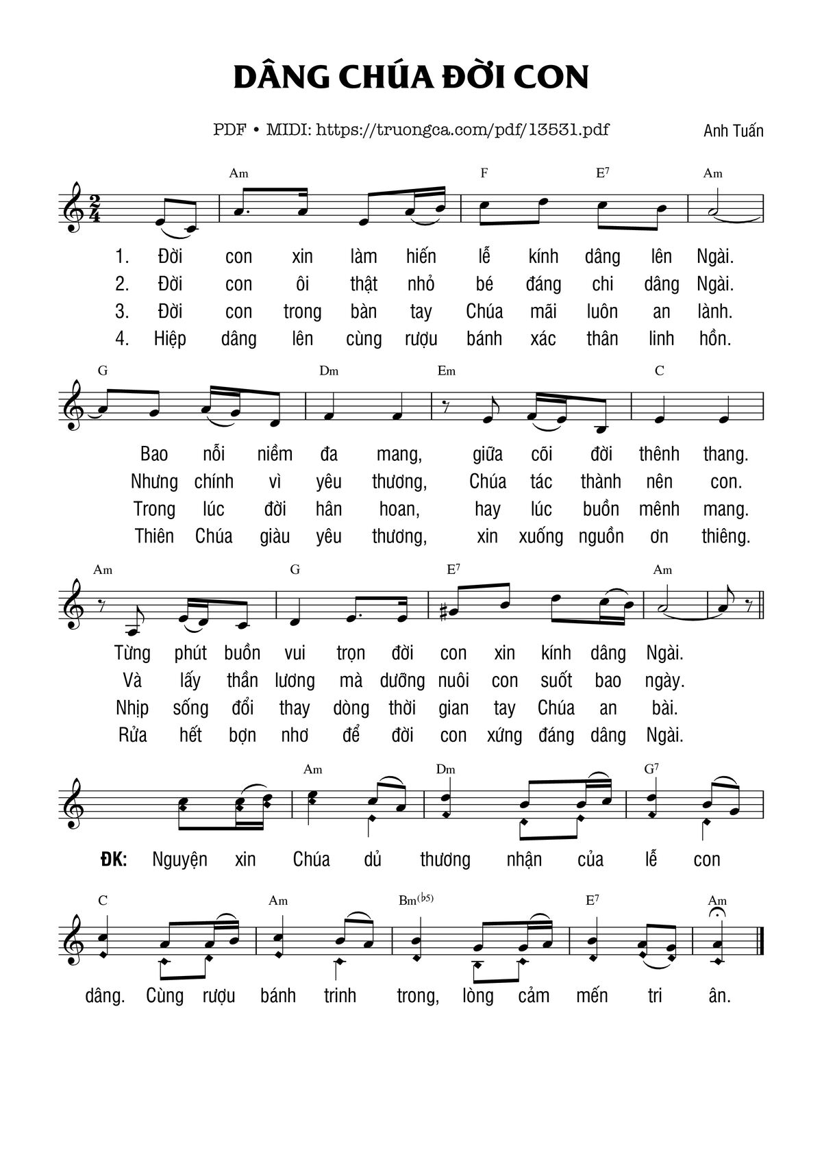 Anh Tuấn Đời con xin làm hiến lễ kính dâng lên Ngài [PDF] [Sheet] [Lời H.A] [Mp4/Midi]