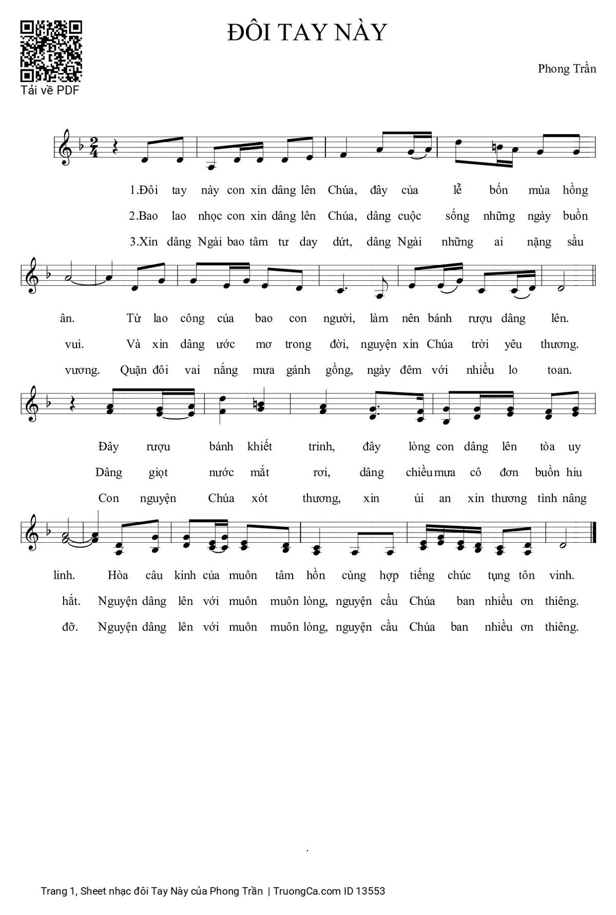 Phong Trần Thể hiện Vũ Phong Vũ Đôi tay này con xin dâng lên Chúa [PDF] [Sheet] [Lời H.A] [Mp4/Midi]