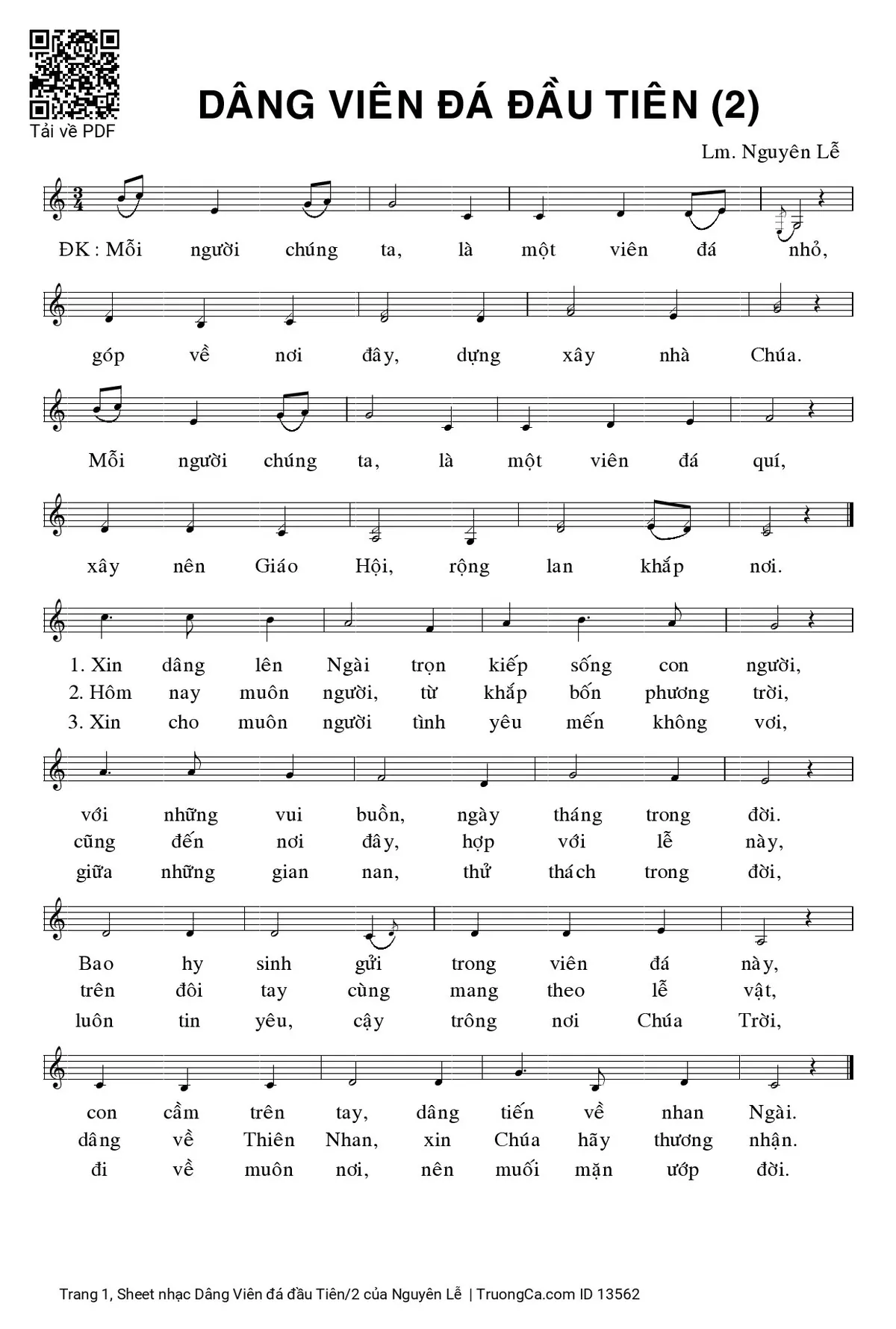 Nguyên Lễ Mỗi người chúng ta là một viên đá nhỏ góp về nơi đây dựng xây Nhà Chúa [PDF] [Sheet] [Lời H.A] [Mp4/Midi]
