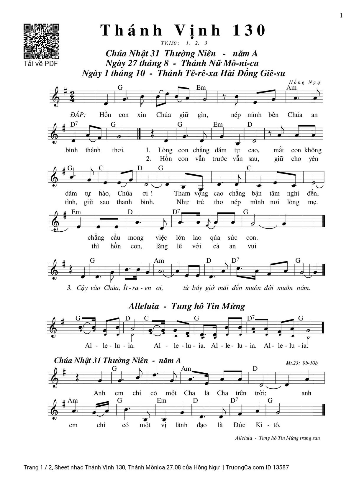 Các sheet PDF tương tự Thánh Vịnh 130, Thánh Mônica 27.08: