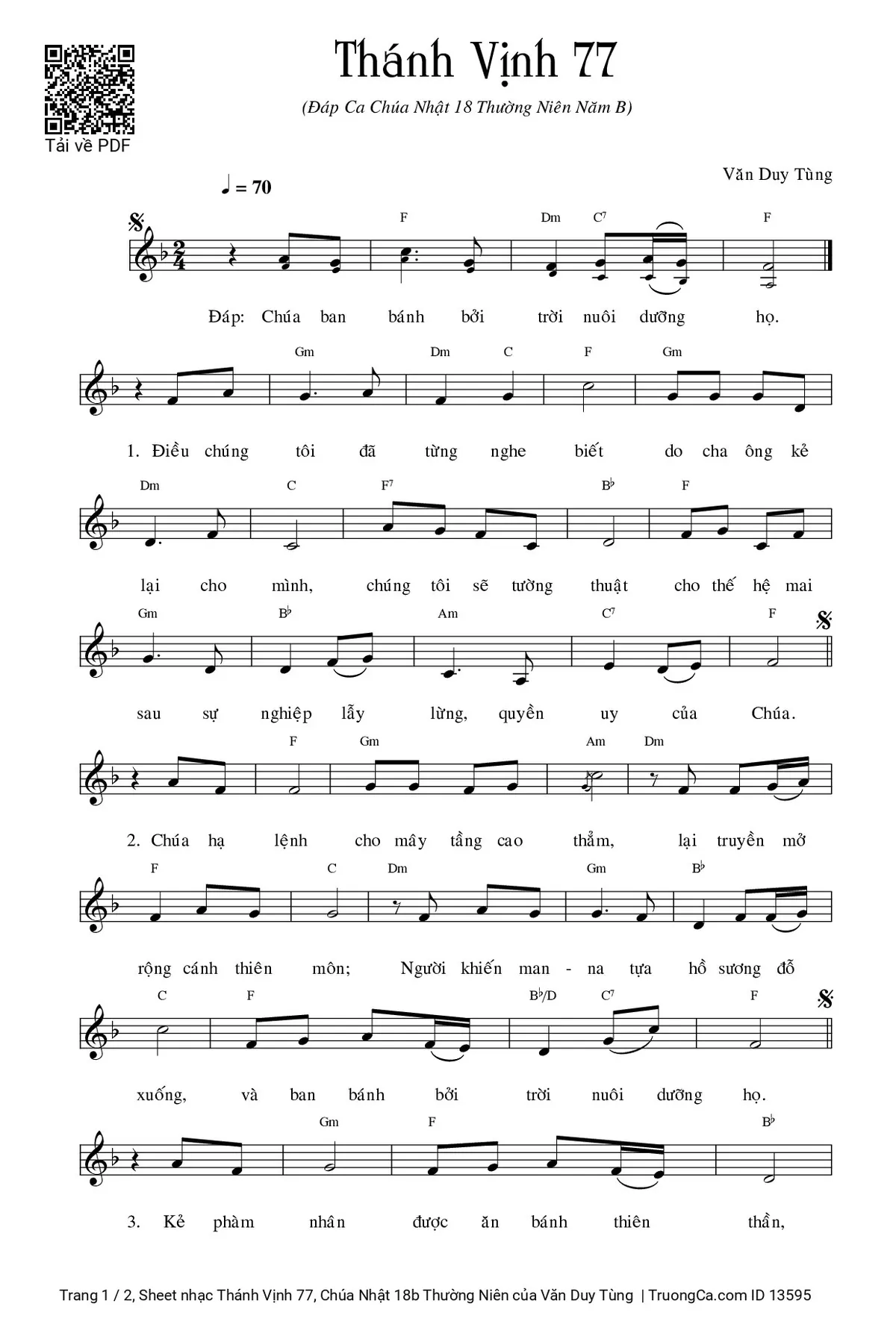 Các sheet PDF cùng tên Thánh Vịnh 77, Chúa Nhật 18b Thường Niên: