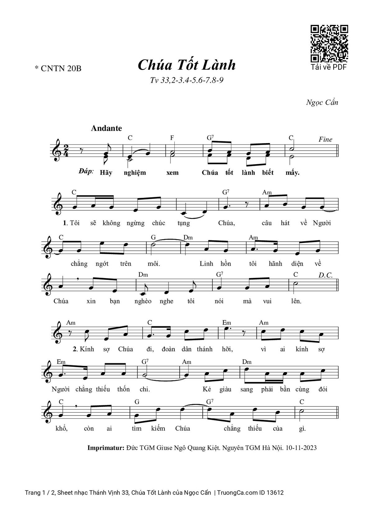 Các sheet PDF cùng tên Thánh Vịnh 33, Chúa Tốt Lành: