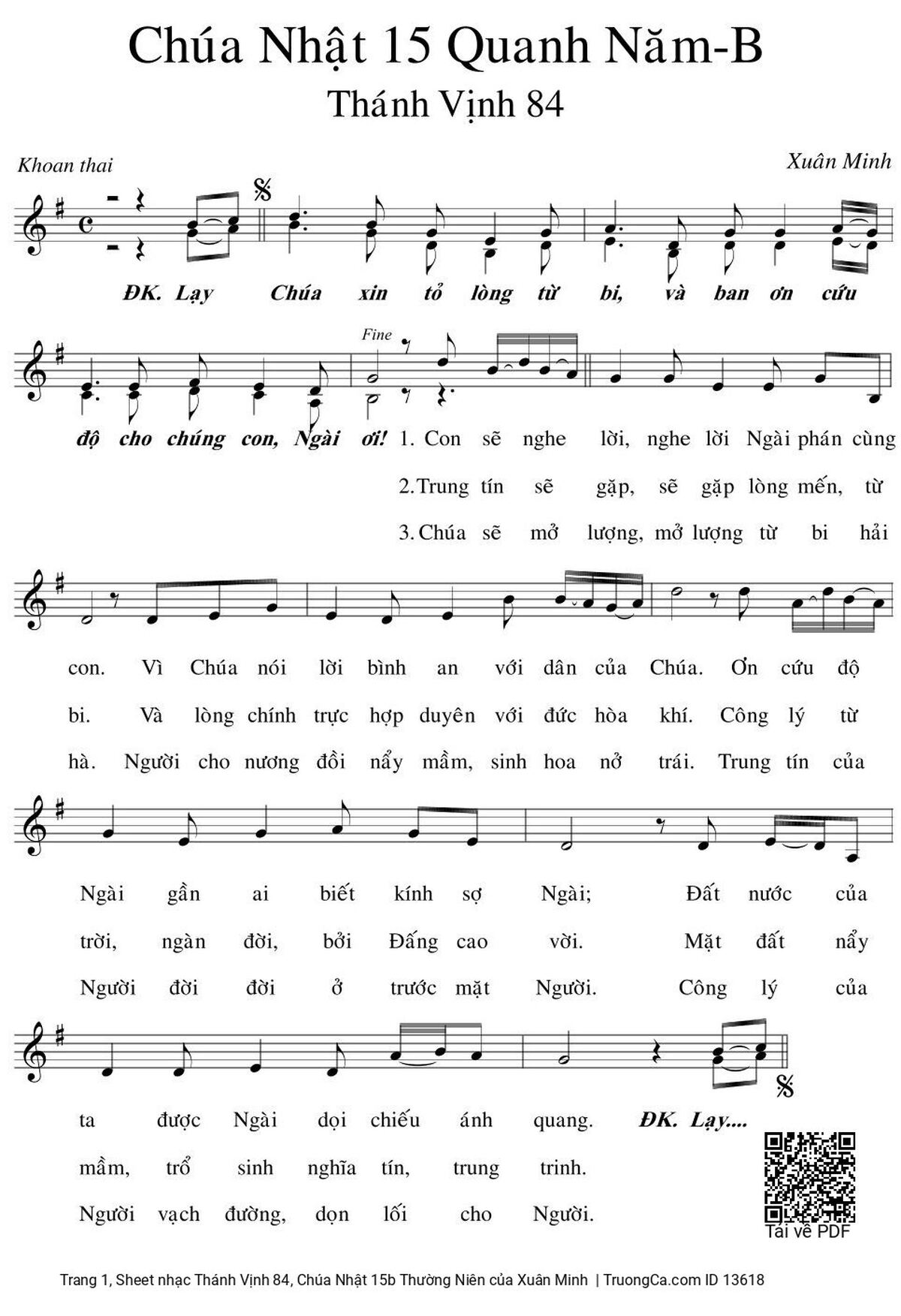 Xuân Minh Lạy Chúa xin tỏ lòng từ bi và ban ơn cứu độ cho chúng con [PDF] [Sheet] [Lời H.A] [Mp4/Midi]