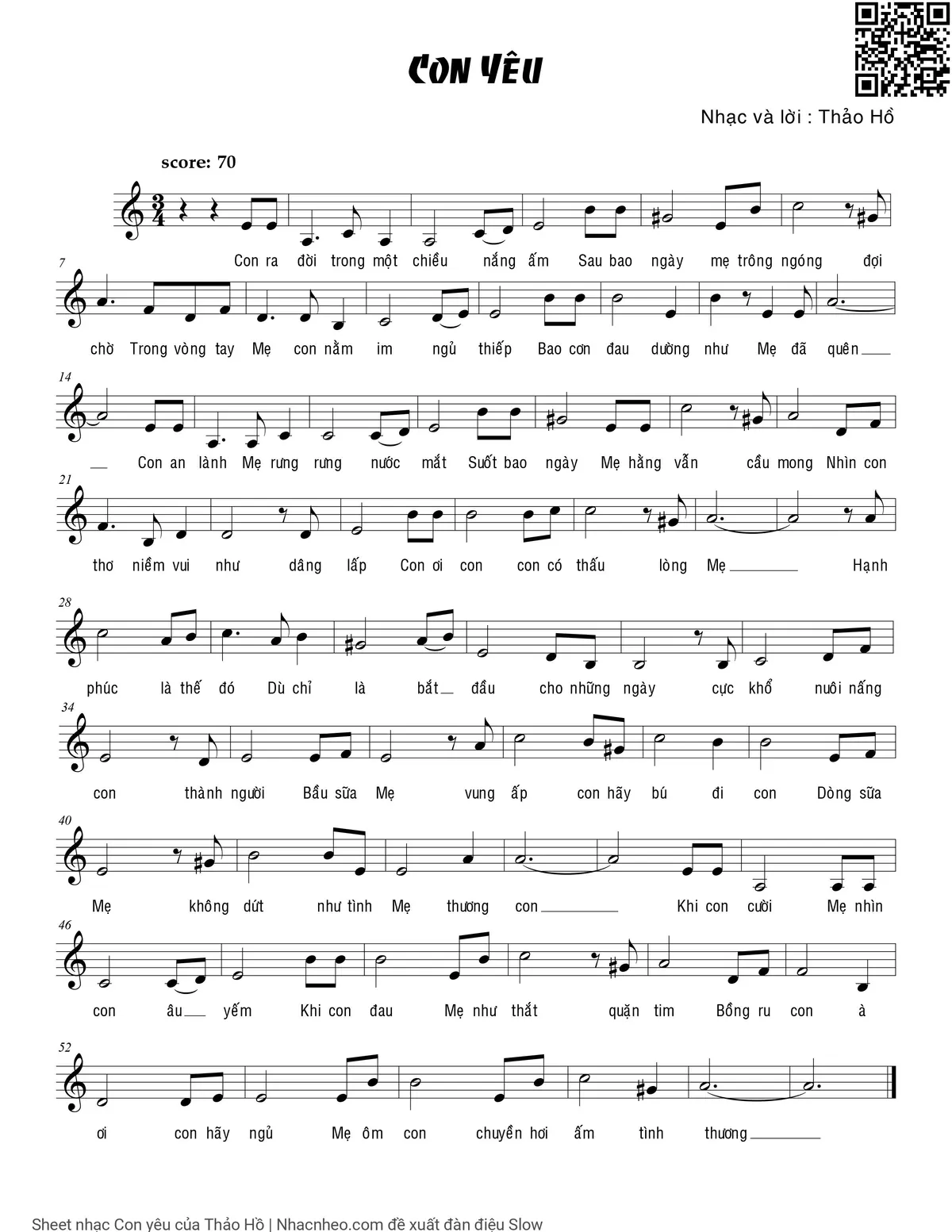 Phần nghe hát Con yêu (Thảo Hồ) được nhúng từ Youtube, Musescore hoặc link ngoài và chịu sự kiểm soát bản quyền của bên thứ ba đó, vì vậy có thể bị xóa hoặc chèn quảng cáo bất kỳ lúc nào. Nếu bạn không nghe - xem được ca sĩ hát tức là đã bị Youtube hoặc Musescore kiểm soát.