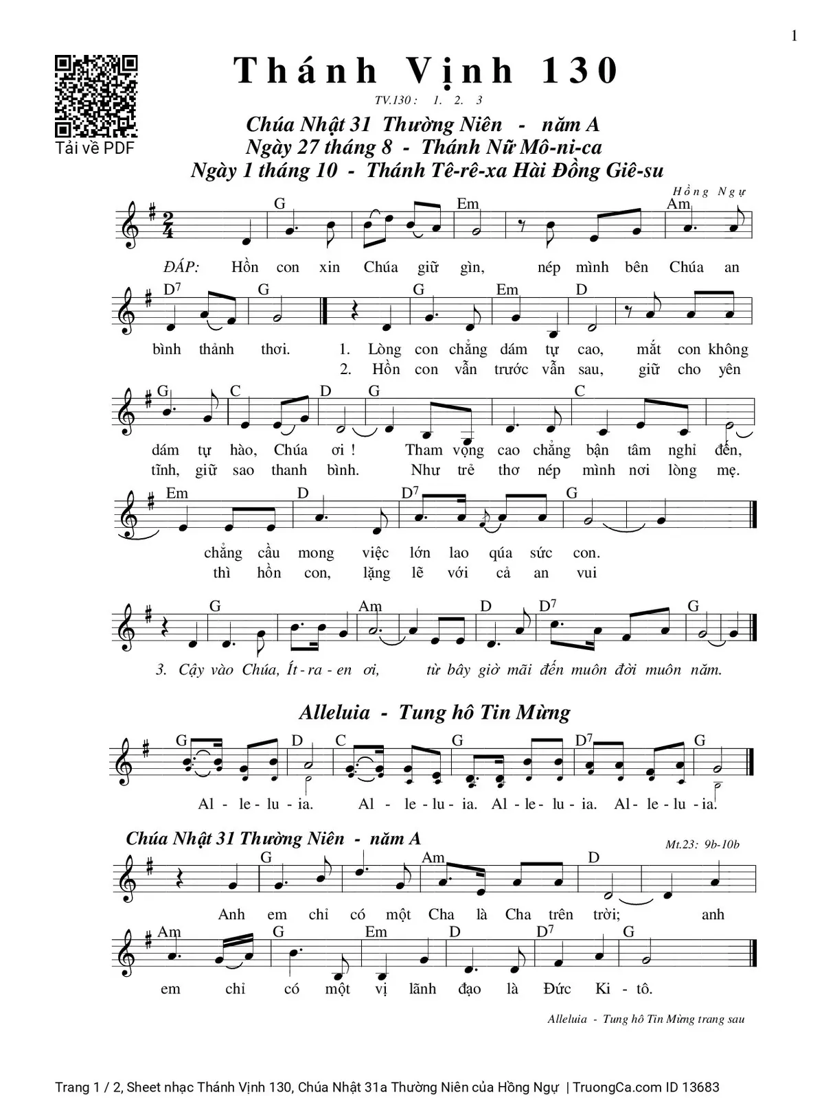 Các sheet PDF cùng tên Thánh Vịnh 130, Chúa Nhật 31a Thường Niên: