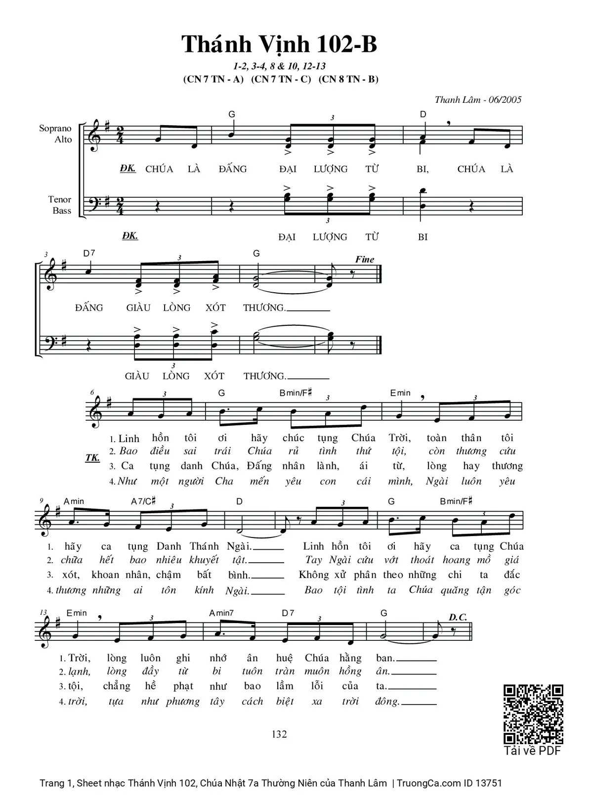 Các sheet PDF cùng tên Thánh Vịnh 102, Chúa Nhật 7a Thường Niên: