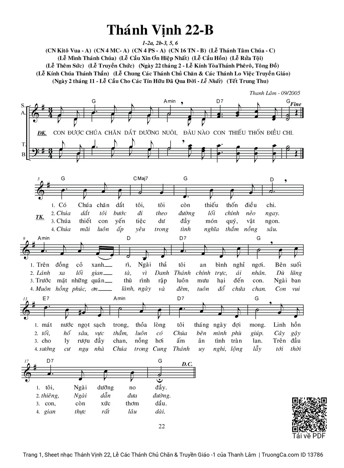 Thể loại 🌾 Nhạc Thánh Ca, 🌾 Thánh Vịnh - Đáp Ca, 🌾 Thánh ca Imprimatur, 🌾 Thánh Vịnh 22