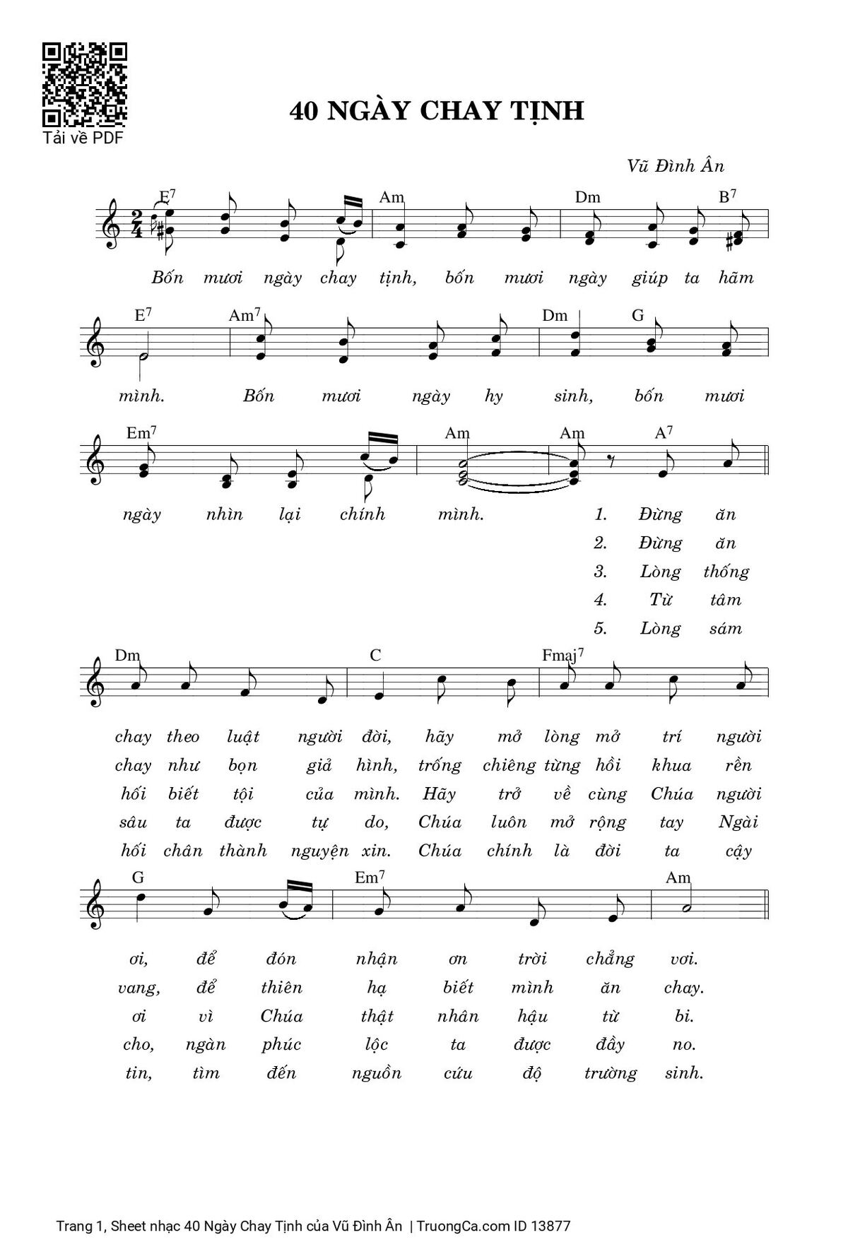 Vũ Đình Ân Mùa Chay Bốn mươi ngày chay tịnh bốn mươi ngày giúp ta hãm mình [PDF] [Sheet] [Lời H.A] [Mp4/Midi]