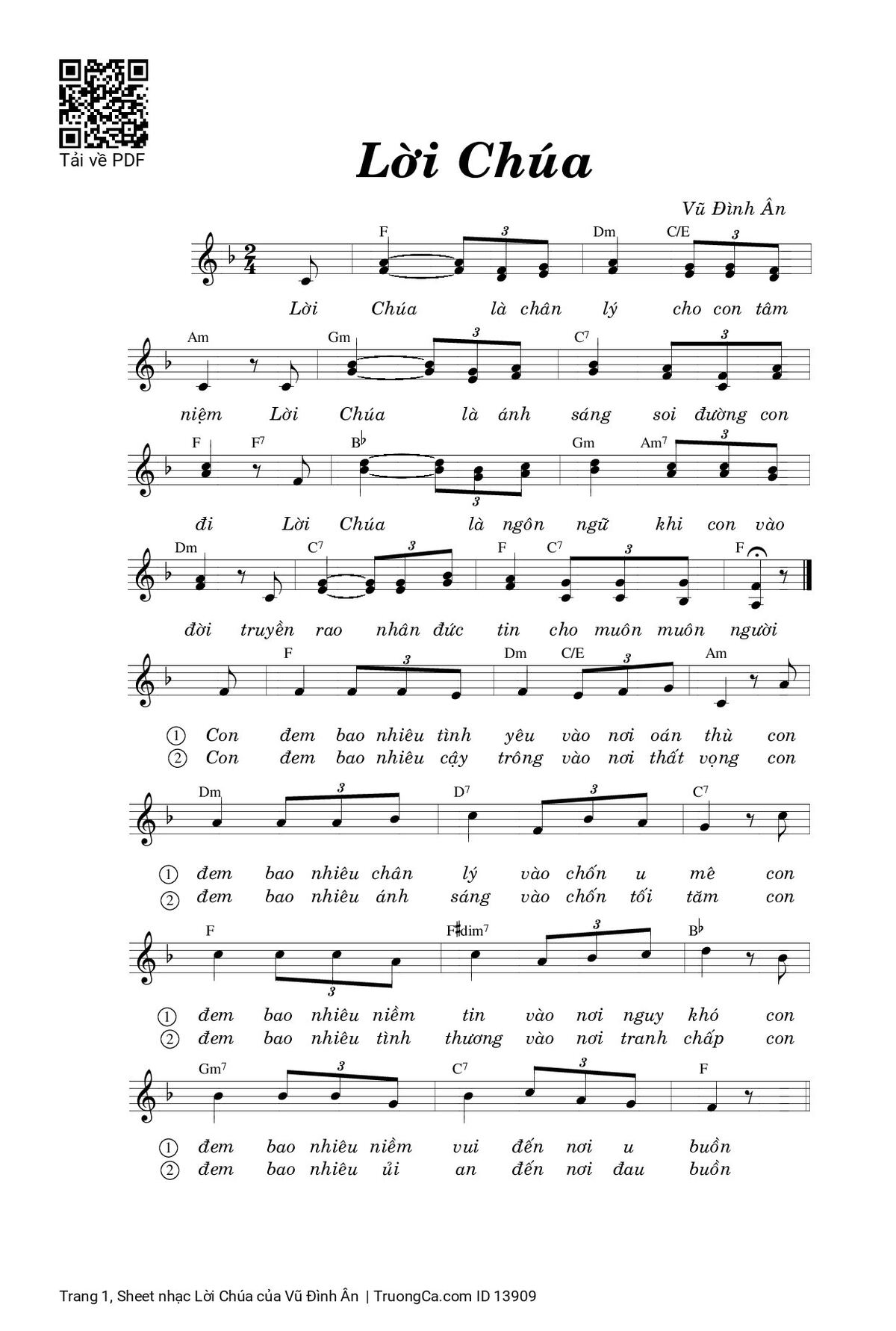 Phần nghe hát Lời Chúa (Vũ Đình Ân) được nhúng từ Youtube, Musescore hoặc link ngoài và chịu sự kiểm soát bản quyền của bên thứ ba đó, vì vậy có thể bị xóa hoặc chèn quảng cáo bất kỳ lúc nào. Nếu bạn không nghe - xem được ca sĩ hát tức là đã bị Youtube hoặc Musescore kiểm soát.
