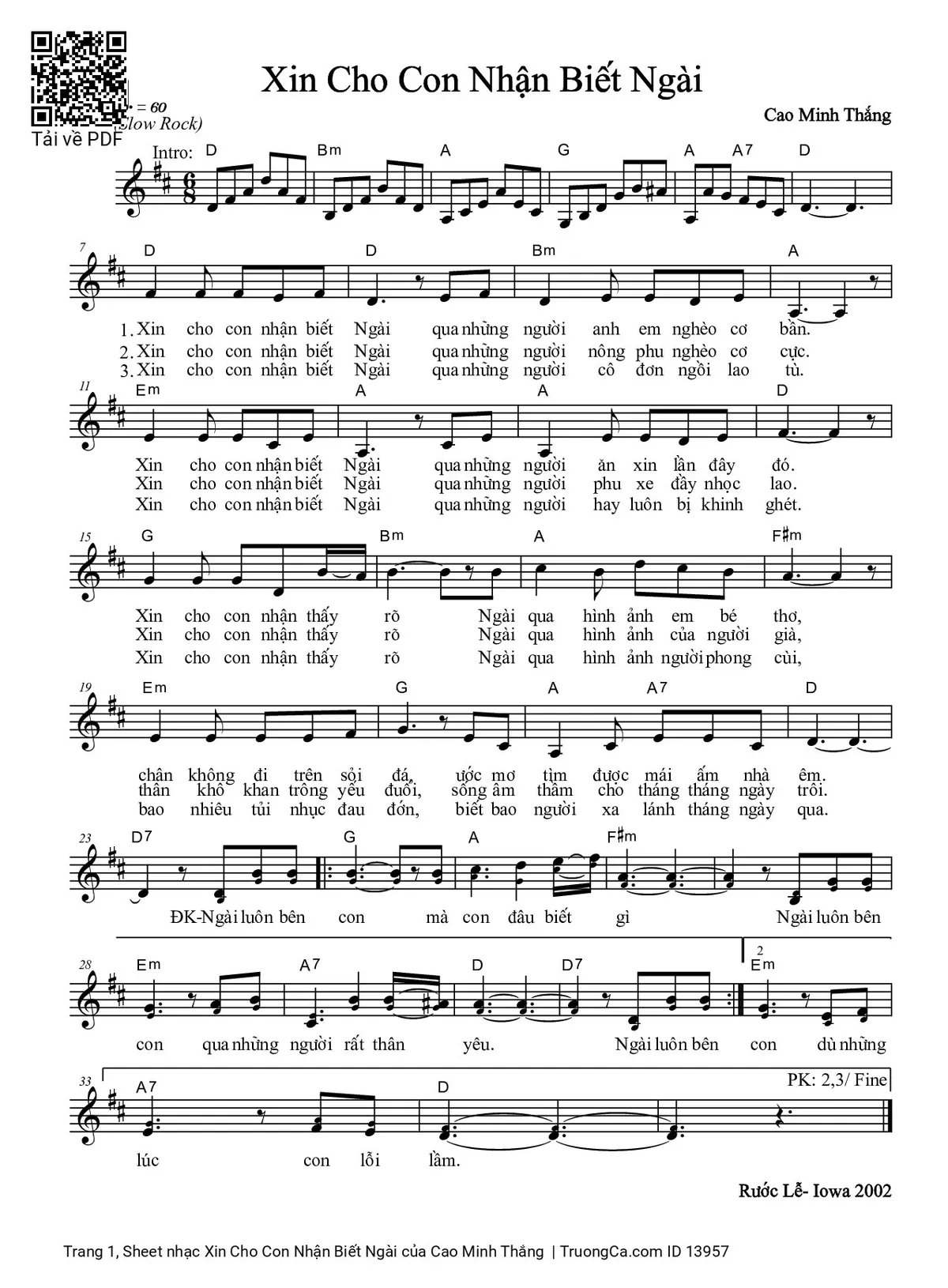 Cao Minh Thắng Xin cho con nhận biết Ngài qua những người anh em nghèo cơ bần [PDF] [Sheet] [Lời H.A] [Mp4/Midi]