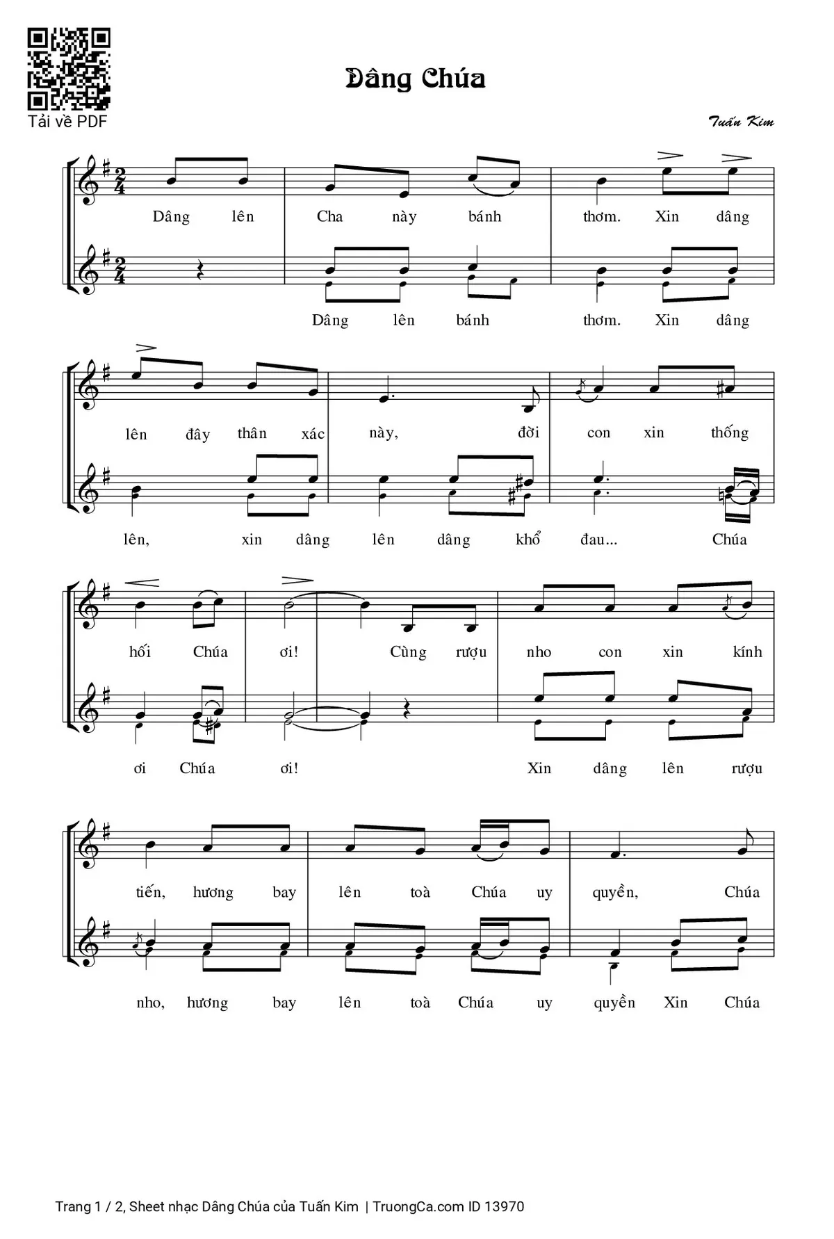 Phần nghe hát Dâng Chúa (Tuấn Kim) được nhúng từ Youtube, Musescore hoặc link ngoài và chịu sự kiểm soát bản quyền của bên thứ ba đó, vì vậy có thể bị xóa hoặc chèn quảng cáo bất kỳ lúc nào. Nếu bạn không nghe - xem được ca sĩ hát tức là đã bị Youtube hoặc Musescore kiểm soát.