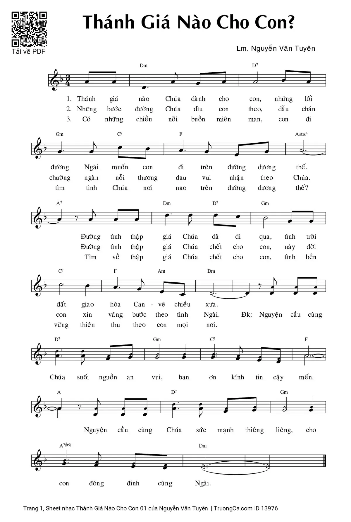 Nguyễn Văn Tuyên Ca Nguyện Hiệp Lễ Thánh giá nào Chúa dành cho con [PDF] [Sheet] [Lời H.A] [Mp4/Midi]