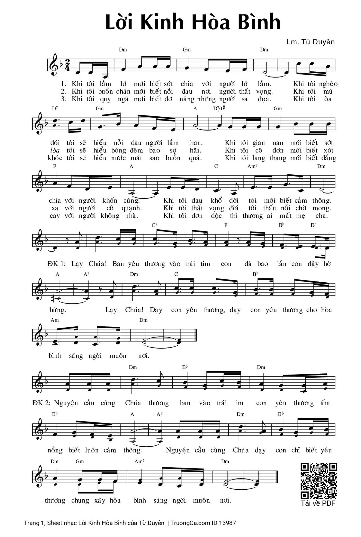 Các sheet PDF cùng tên Lời Kinh Hòa Bình: