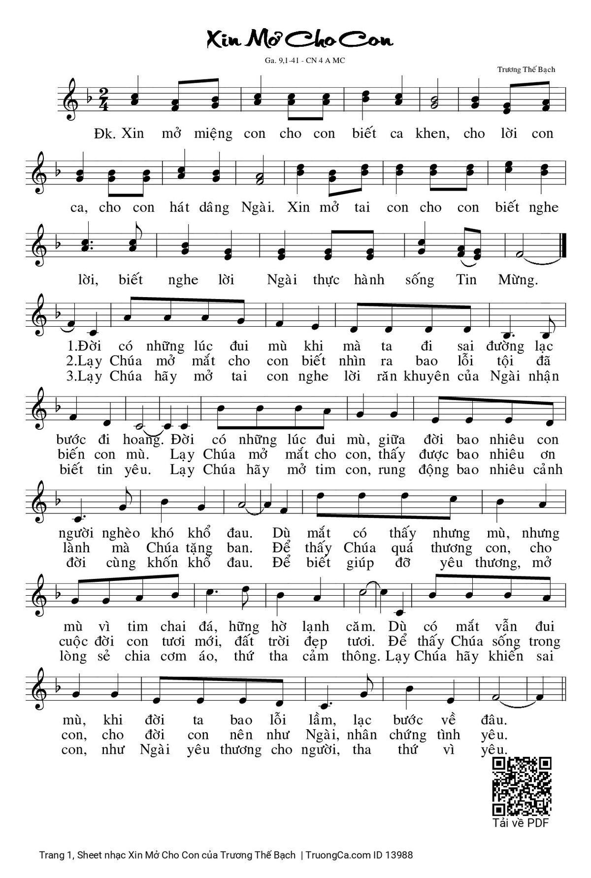 Các sheet PDF tương tự Xin Mở Cho Con: