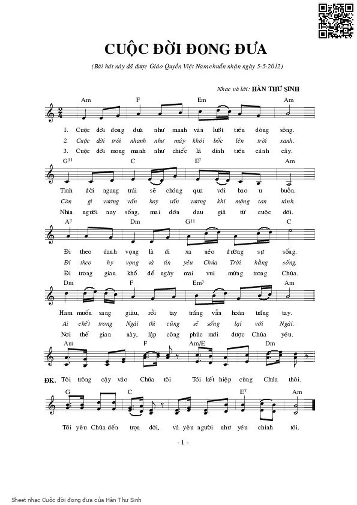 1. [Am] Cuộc đời đong [F] đưa như mảnh ván lướt trên dòng [Am] sông.